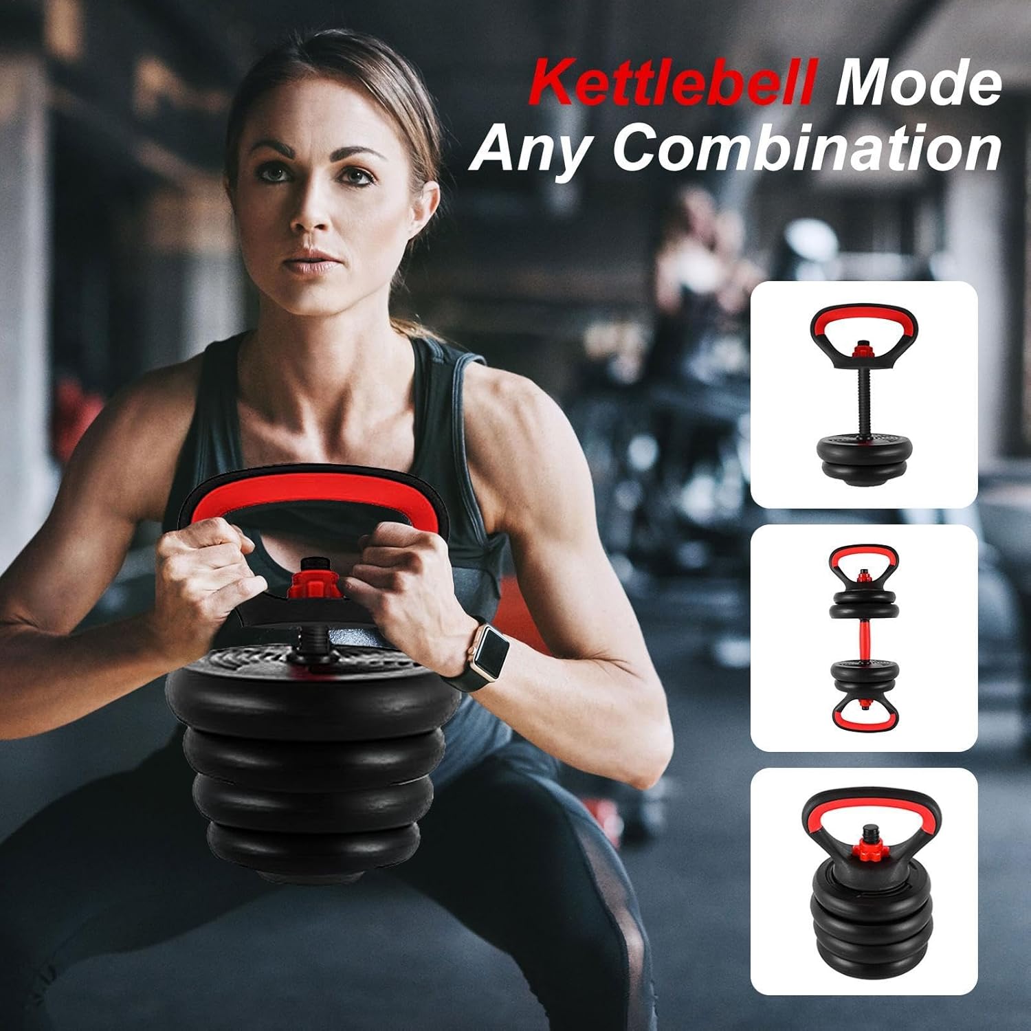 4-in-1 Dumbbell Set: Inclusive of 4-in-1 Multi-function Dumbbell Set, evolving from a pair of dumbbells to a bell, kettlebell, and pushup stand, ideal for bench press, squats, and more, it helps you perform a wide range of exercises