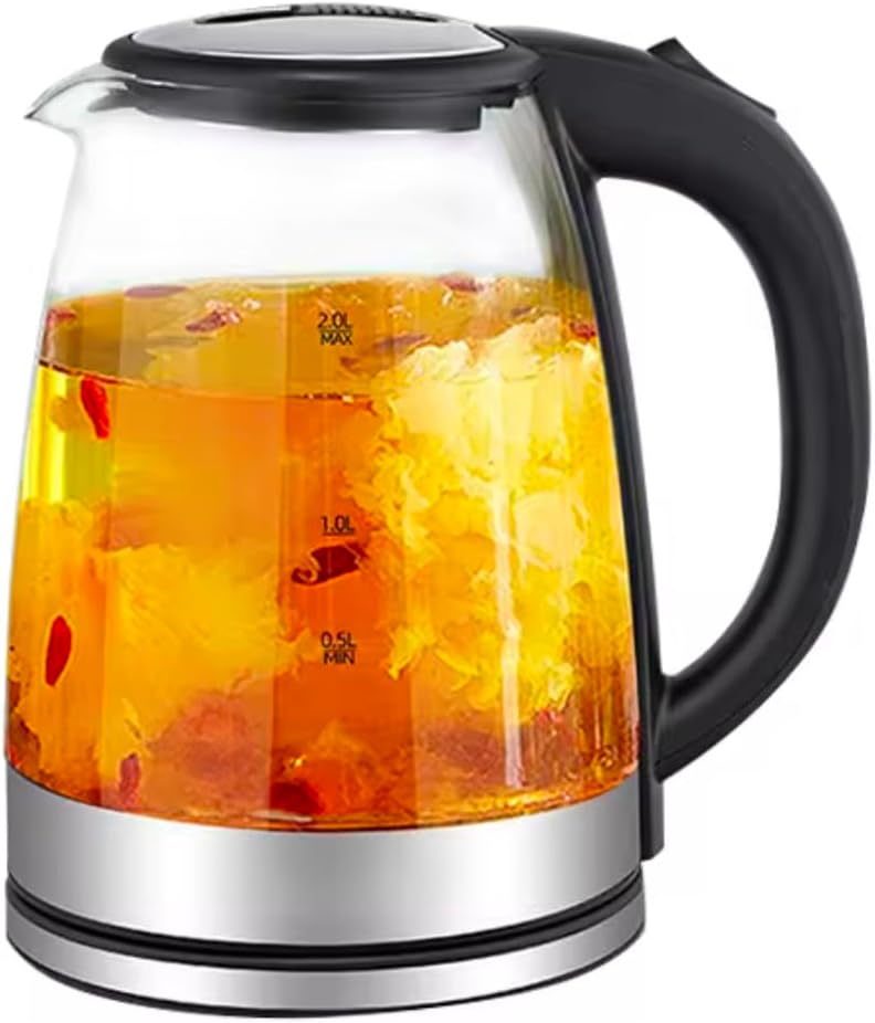 Aspecto elegante y diseño elegante: la tetera eléctrica de vidrio Topwit tiene un aspecto impresionante y el diseño transparente la hace aún más atractiva. La tecnología indicadora que indica que la calefacción se encenderá automáticamente a medida que se inicia la calefacción y se apagará automáticamente después de hervirse. El hervidor de vidrio delicado pero elegante funciona como un encanto y añade belleza a tu cocina. Alta calidad y más saludable: el hervidor eléctrico se combina con vidrio de borosilicato de grado alimenticio y el acero inoxidable 304 hace que se vea fascinante y saludable. El vidrio de borosilicato tiene un coeficiente de expansión térmica muy bajo, lo que lo hace resistente al choque térmico. Sin BPA, tapa interior y parte inferior de acero 100% inoxidable, cuida tu seguridad y salud. Gran capacidad y práctica: una capacidad total de 2 litros con 1000 vatios de potencia para agua de ebullición rápida. Se puede utilizar fácil y rápidamente para preparar café, té o cualquier otra bebida caliente para tu familia o amigos y también es un artículo esencial para el dormitorio. Con el diseño de apertura grande, te permite limpiar el hervidor en el interior fácilmente. Mayor seguridad: con el controlador de temperatura avanzado, el hervidor tiene tecnología de apagado automático y protección en seco para hervir, asegurando que el agua esté completamente hervida y se apaga cuando el agua se hierve o no hay agua en el interior. El mango que se mantiene fresco asegurará que el manejo del hervidor de té sea fácil y seguro, ayuda a prevenir quemaduras. [Servicio al cliente sinceramente] – Ofrecemos sinceramente un servicio al cliente genuino. Si tiene alguna necesidad o pregunta, el equipo de servicio de Topwit estará encantado de ayudarle