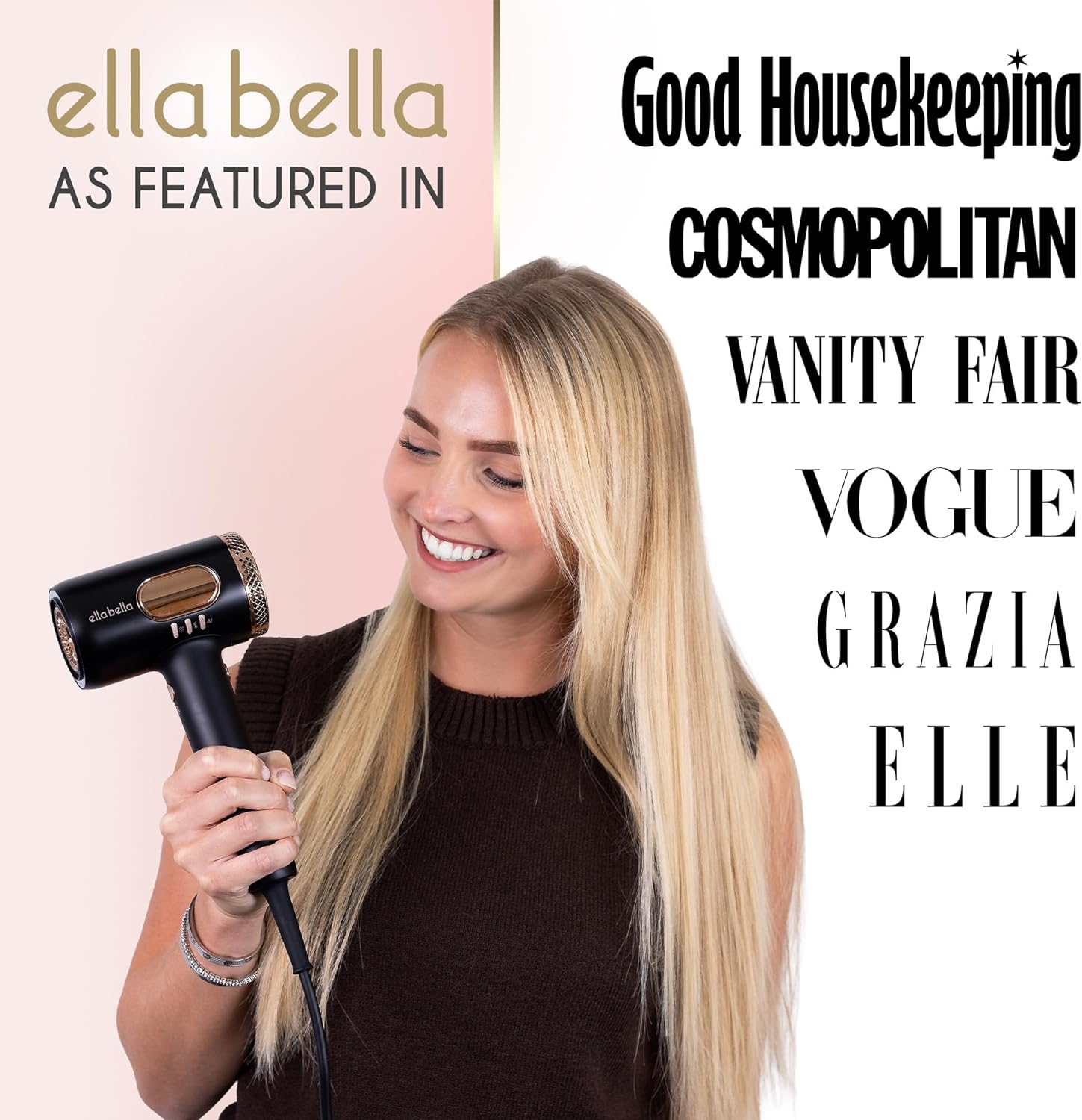 ELLA BELLA® Professional Smart Plasma Hair Dryer with Diffuser • Advanced Plasma Technology Blow Dryer • Intelligent Heat Control & Wind Speeds • Suitable All Hair Types