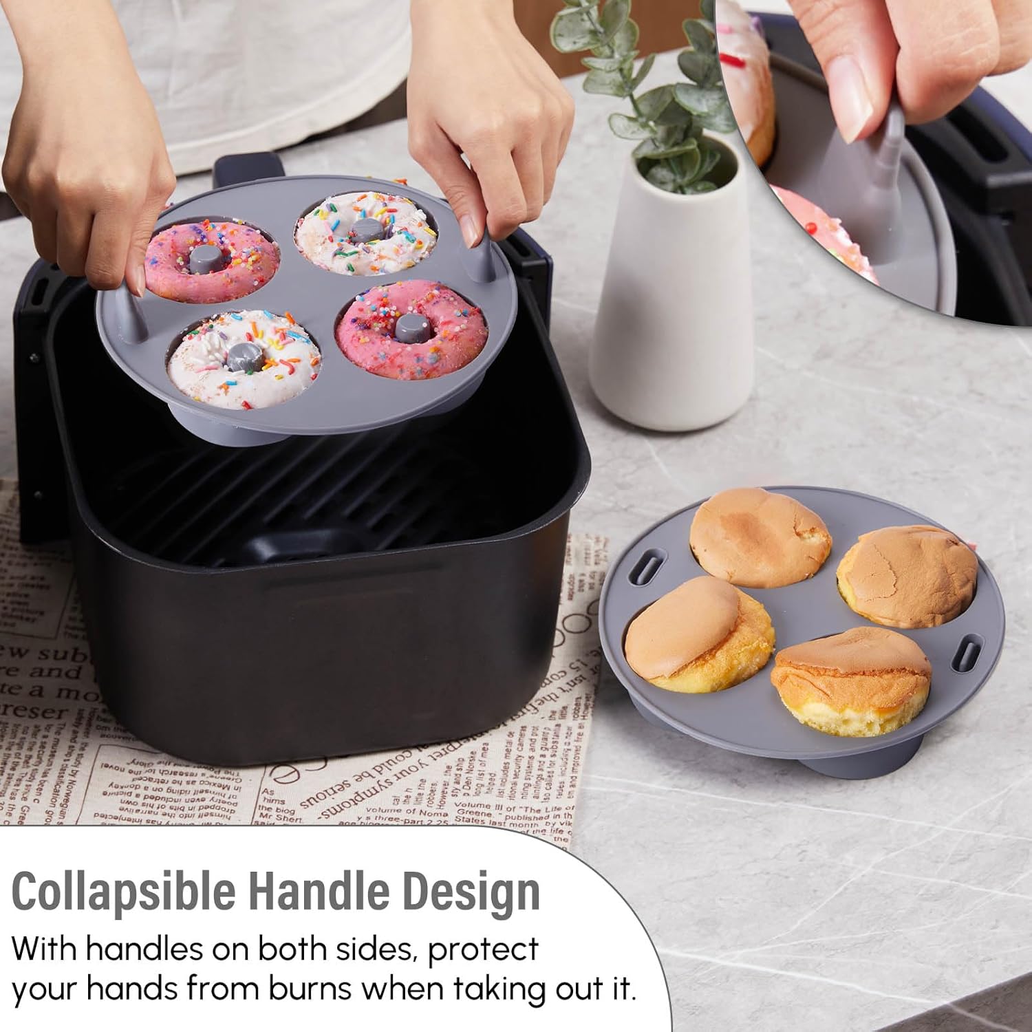 EM Silicone Air Fryer Liners Set of – Reusable Air Fryer Accessories with Cupcake, Donut, Brownie, Waffle Molds – Heat-Resistant, Food-Grade Silicone for Ninja, Gourmia.