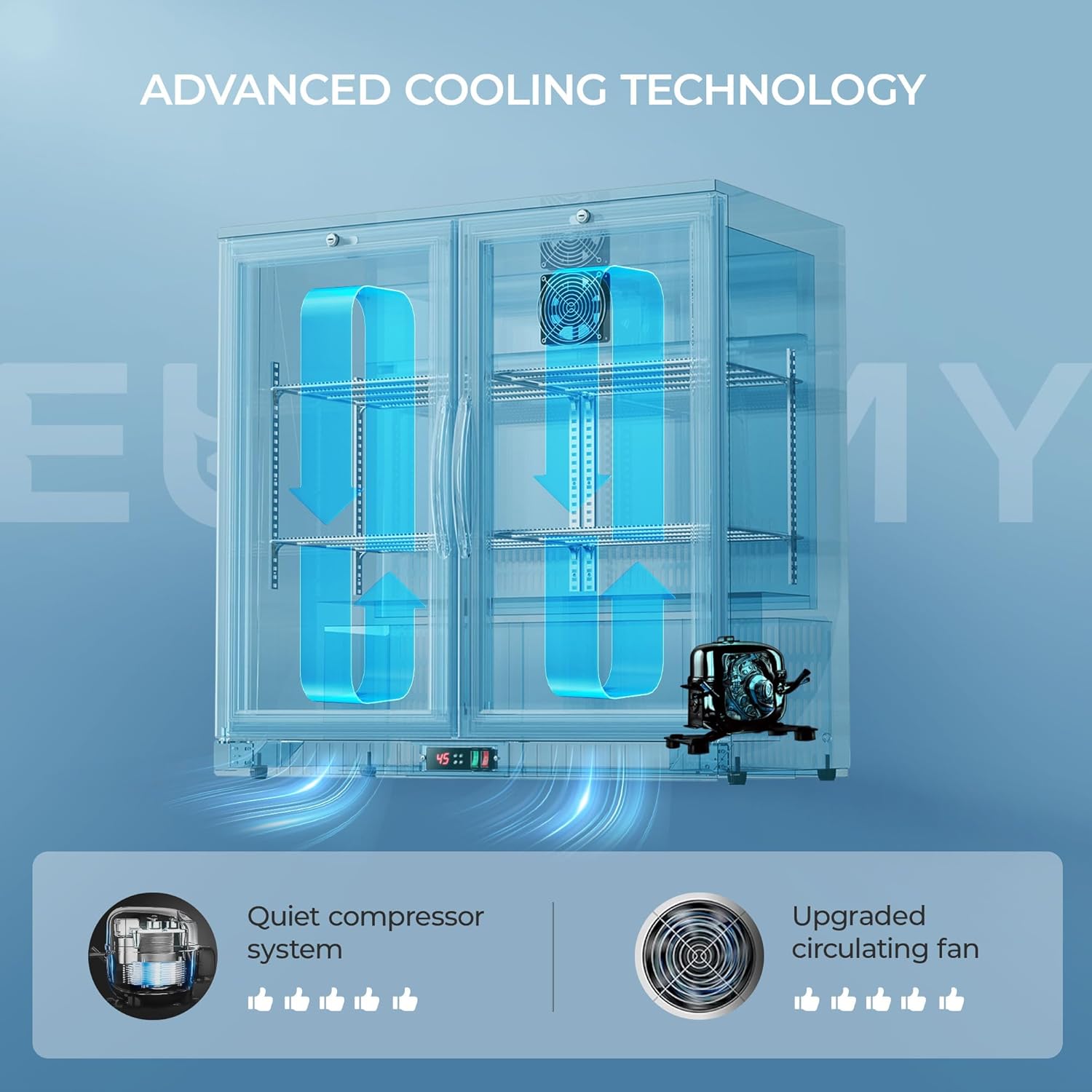 EUHOMY Back Bar Cooler With 2 Glass Swing Doors, Under Counter Back Bar Refrigerator with LED Lighting, 7.4 Cu.Ft Counter Height Refrigerator for Beer, Soda Drinks, Wine, Black