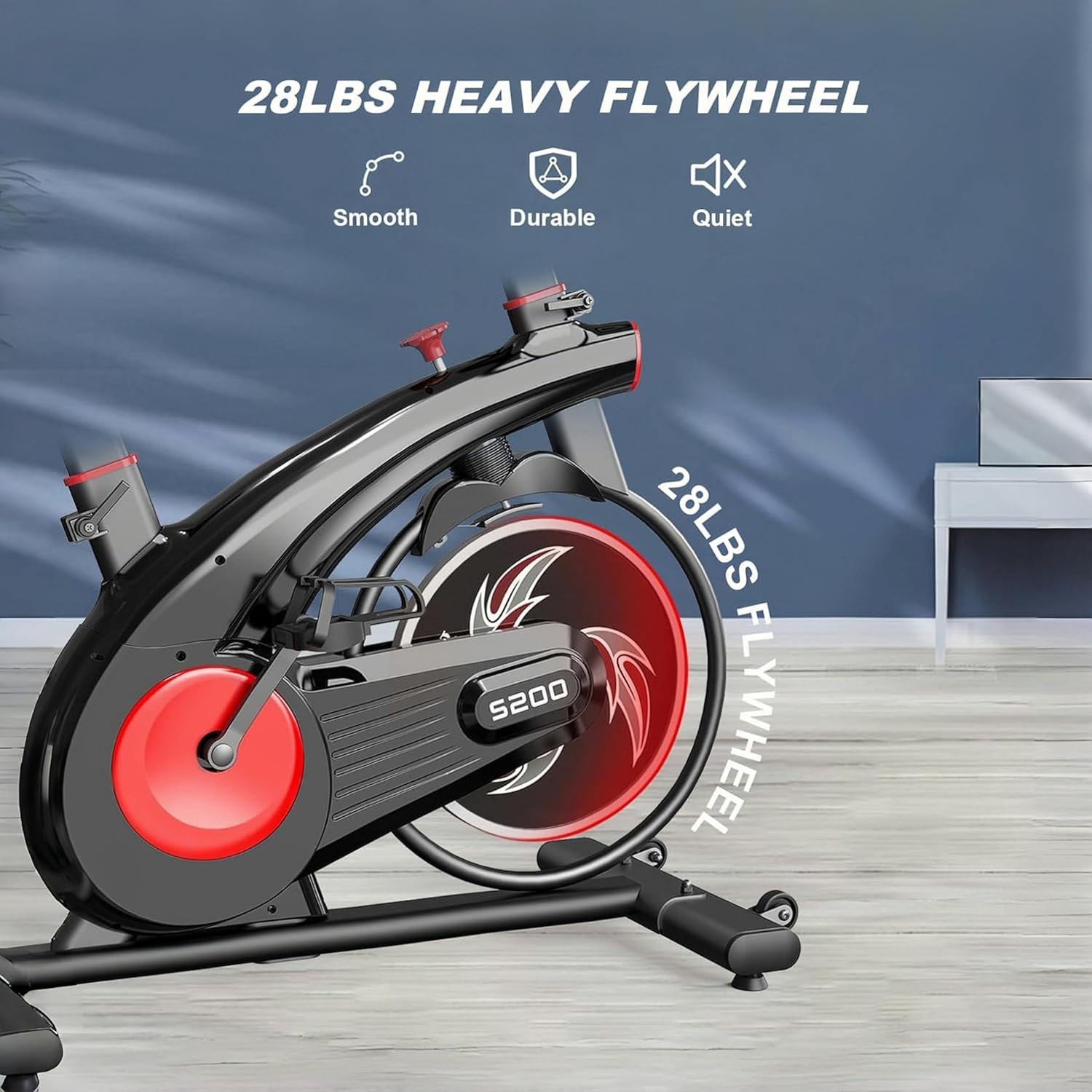 Specifications: Exercise bikes for home of 18 pound flywheel at the same time withstand a weight of 300 pounds, and the heavy-duty steel frame makes cycling smoother. The fitness bike is 43 inches long and 21.6 inches wide, saving space and equipped with movable wheels for girls to move alone. The seat cushion height adjustment range is 26.7-31.5 inches, and the handle height is 43-48 inches, adjustable footstraps can provide support for your foot bottoms the risk of sprains during exercise