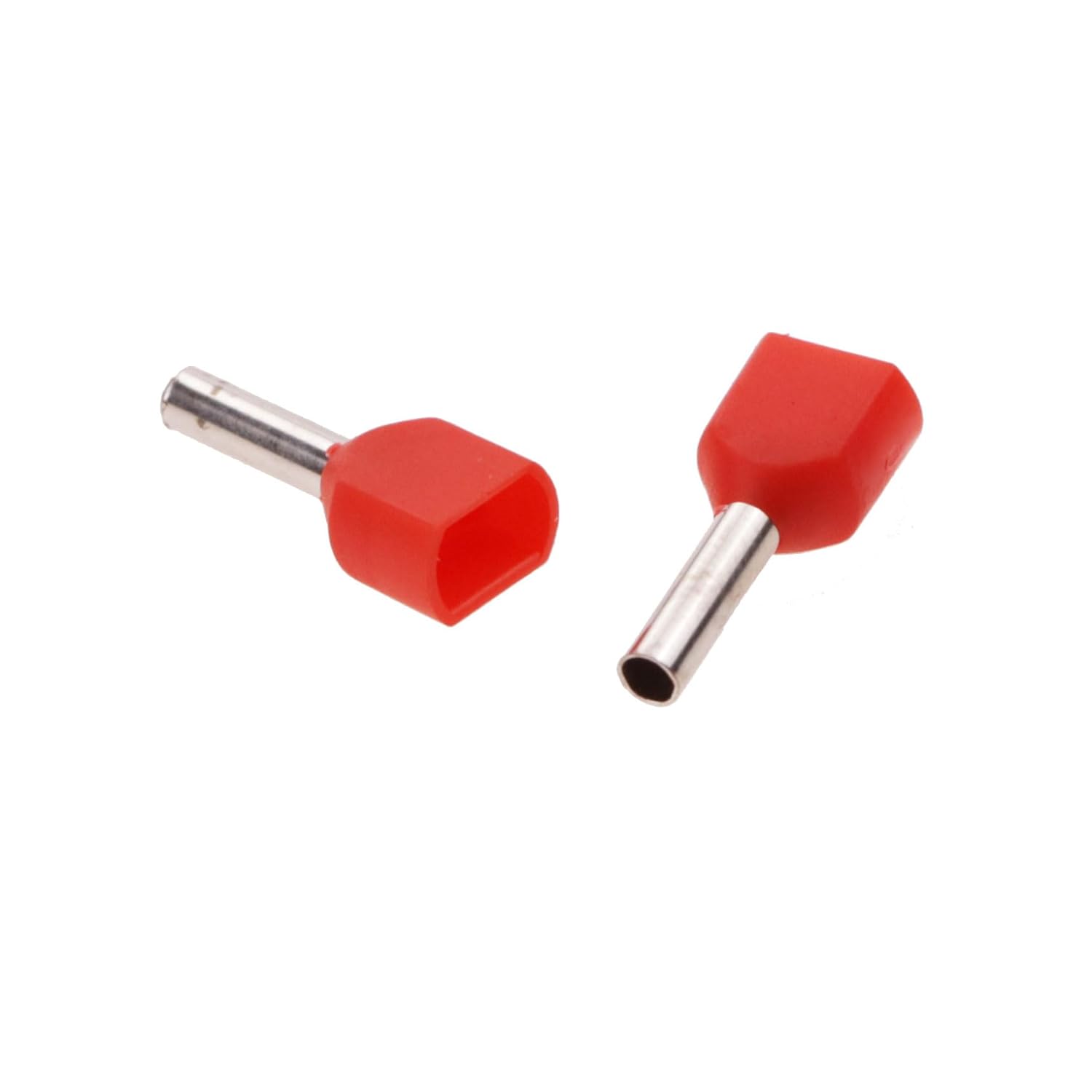 AWG 18/1.0mm² 100pcs Red Dual Barrel Ferrules Wire Ends made of tinned red copper, anti-oxidation and anti-corrosion. Providing high conductivity and low resistivity.