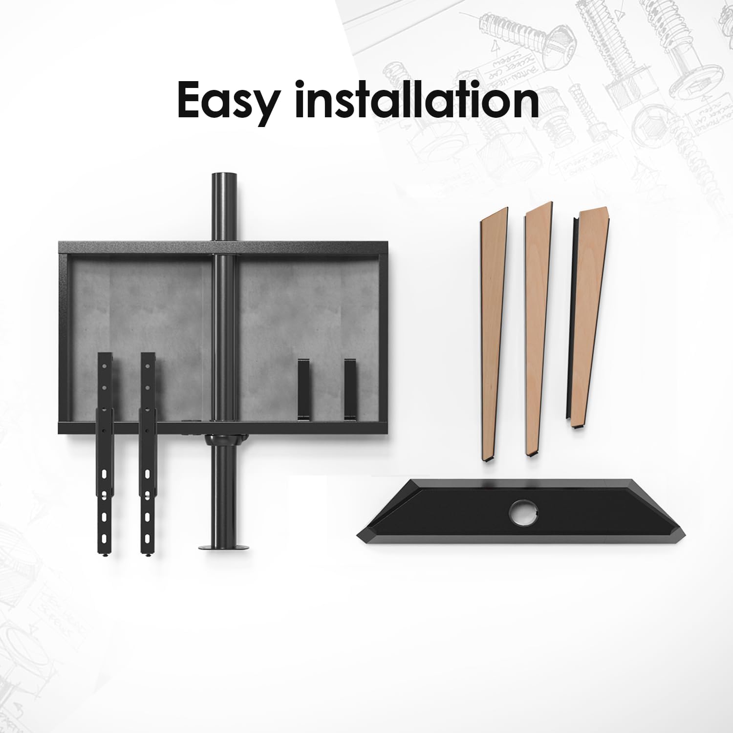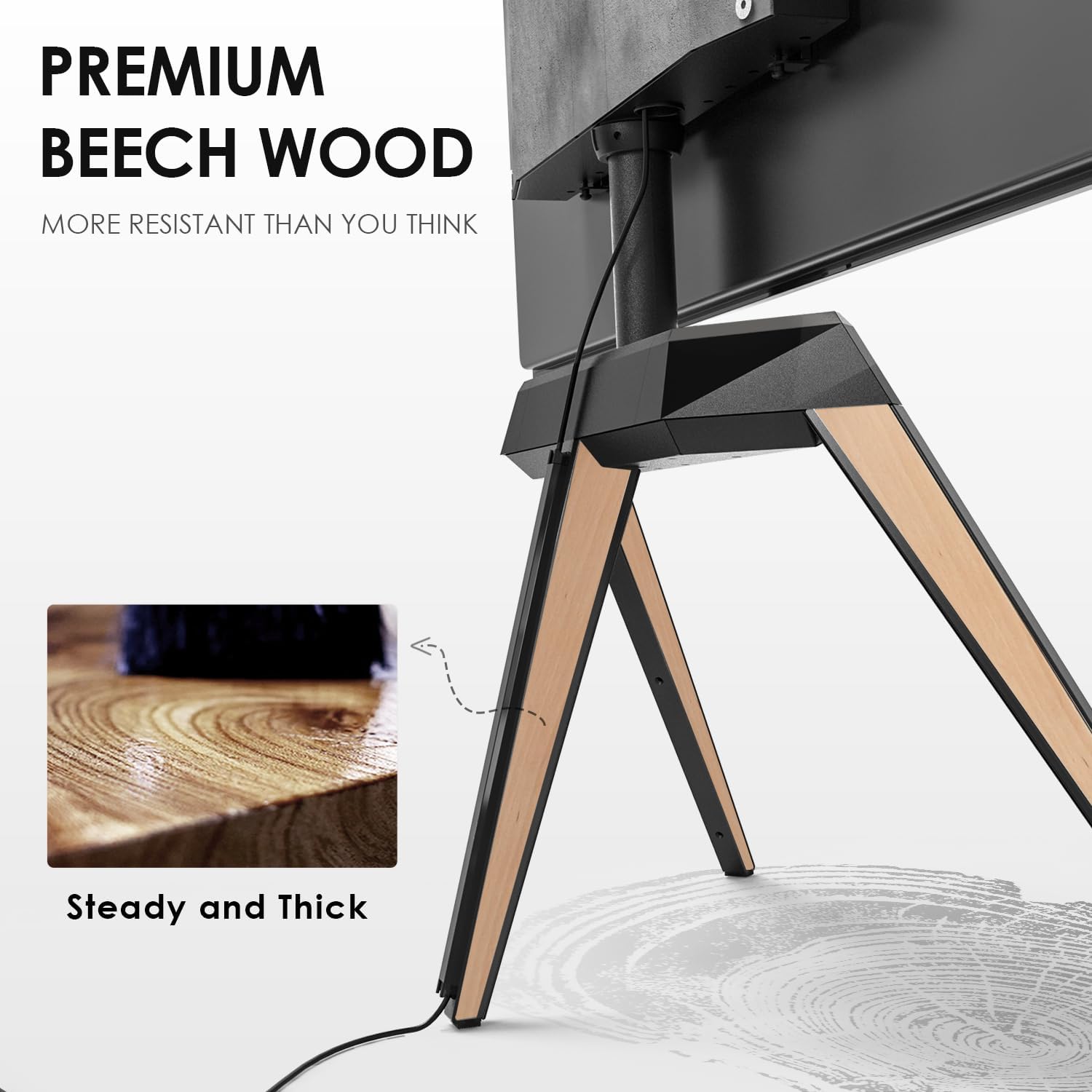 Balance between technology and nature: Constructed by solid beech wood and powder-coated iron, this floor TV stand remains the solidity of the material from nature, and together with the structural science, offers a reliable support for your TV. Premium TV screen above the solid beech wood and iron stand, you’ll see how well this elegant TV easel stand matches your high-tech TV screen