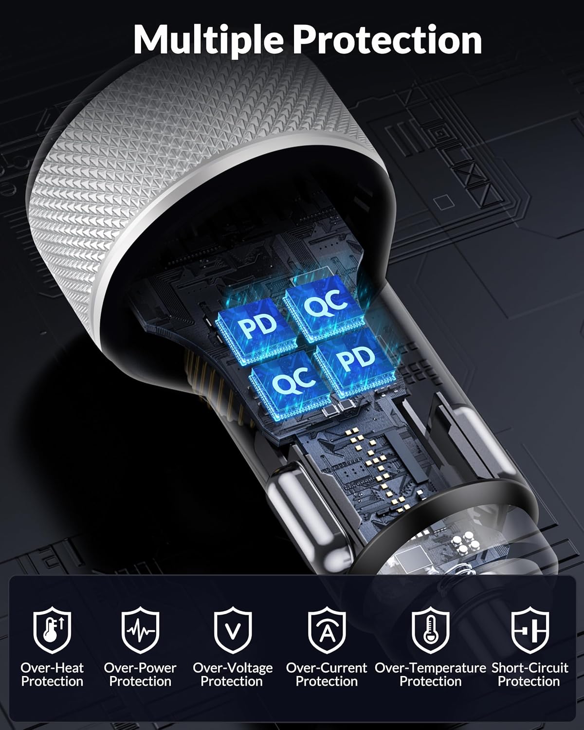 Safe and Reliable : The All-metal car charger has a built-in smart IC chip that automatically matches the current required by the device. Multiple safety protection systems to prevent overheating, overcharge, over-current and automatically stop charging when the battery is full