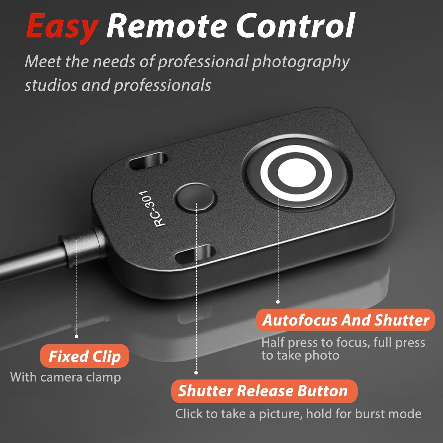 The size buttons on the RC301 are all camera functions, the large button has two gears (half press to focus, press to take photos), and the small press to take photos and focus at the same time