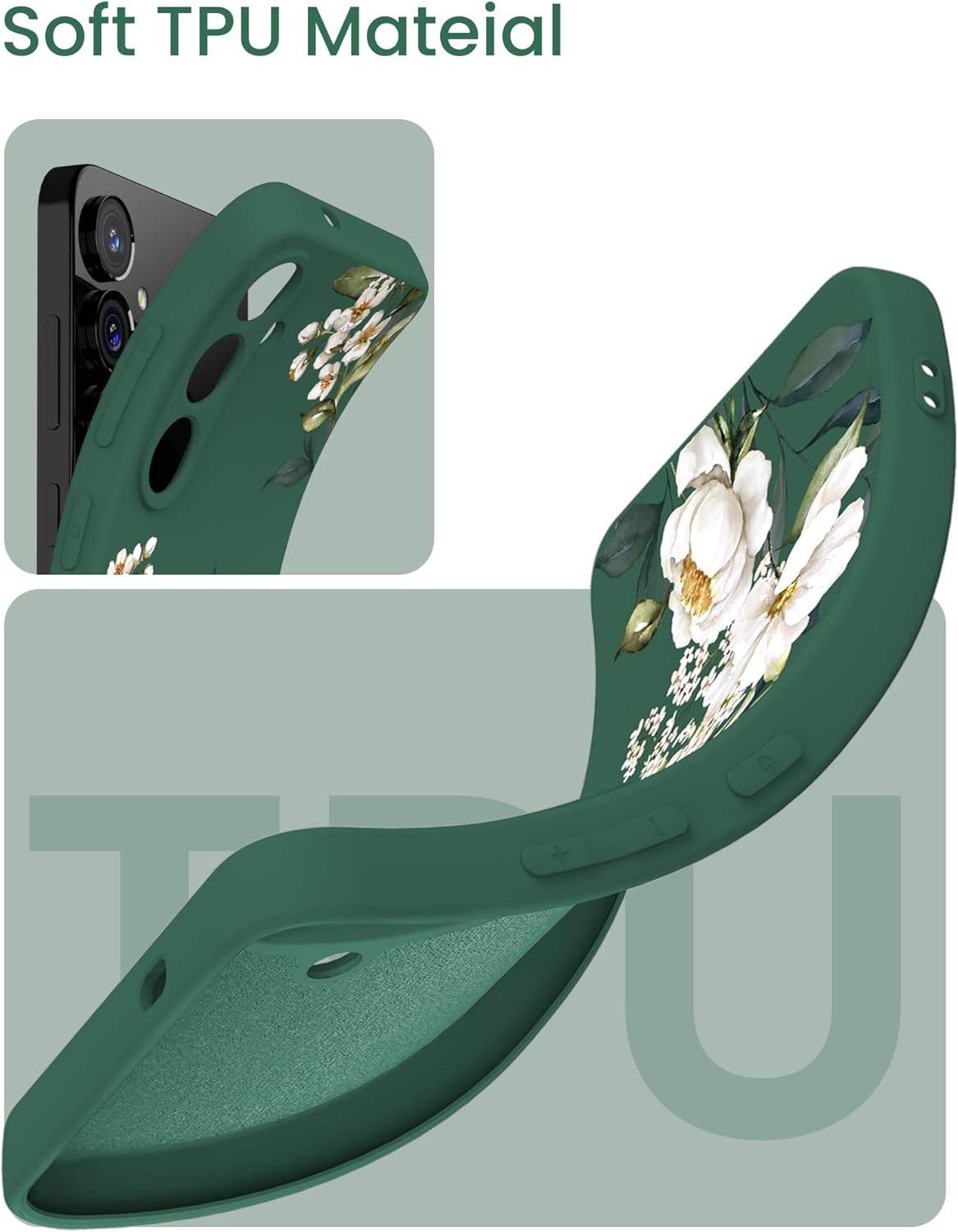 for Samsung Galaxy S25+ Plus Case, Girls Women Florals Liquid Silicone Phone Case, Shockproof Anti-Scratch Soft Protection Case with Screen Protectors for Galaxy S25+ (Midnight Green)