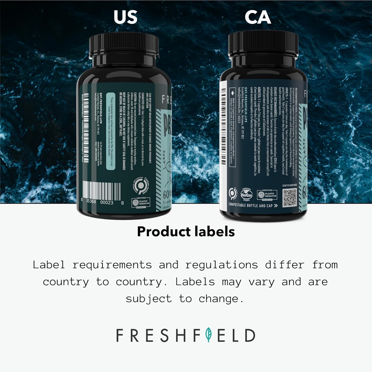 Freshfield Prenatal Vegan Omega 3 DHA: Sustainable, Carrageenan Free, Third Party Tested, Compostable Bottle, Carbon Neutral. Supports Heart, Brain, Joint Health w/DPA