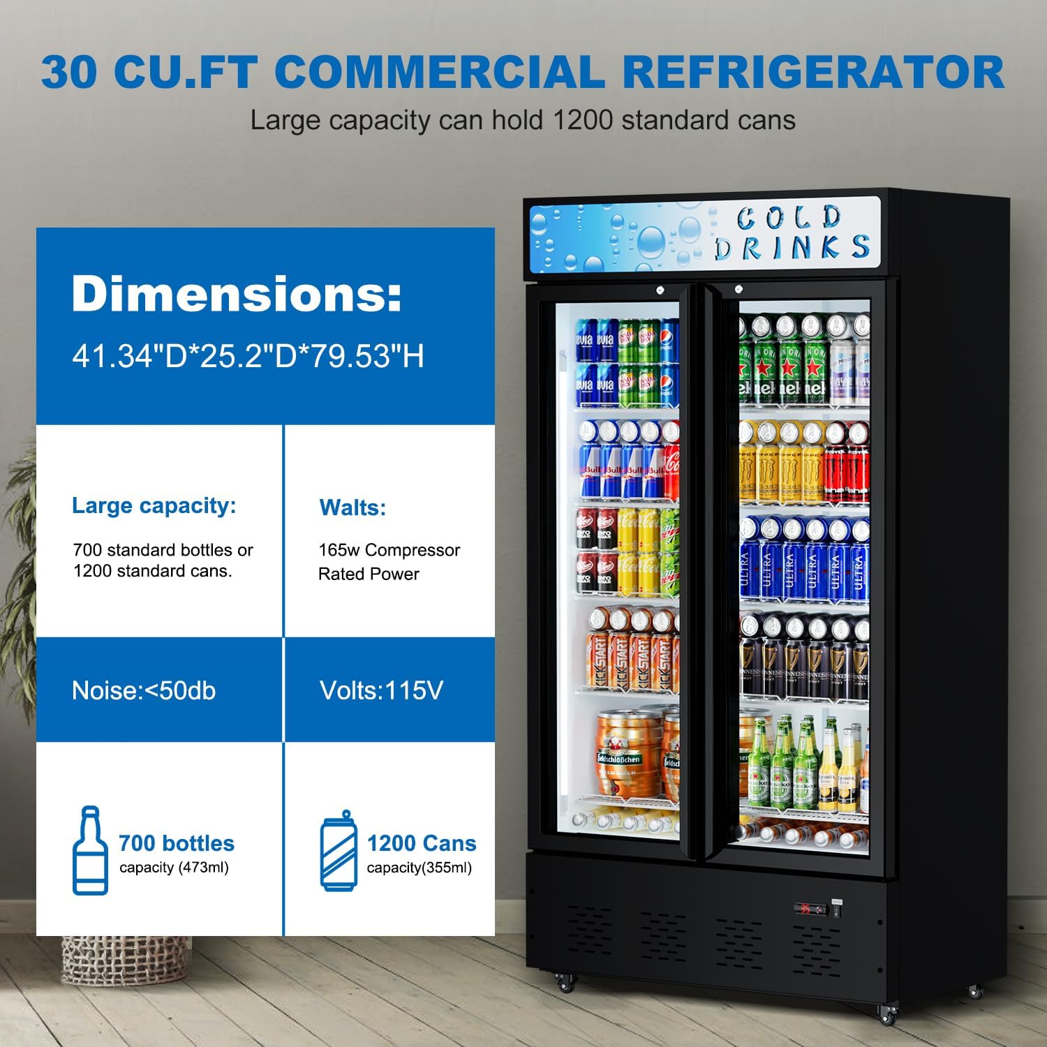 Thick steel & Dual layer glass made of powder coated PCM steel sheet, this commercial fridge is more sturdy and rust resistant. The dual layer glass improves insulation and durability while blocking harmful UV light. Tips: when you received the refrigerator, please tear off the plastic protective film and let it stay for over one day before power to use
