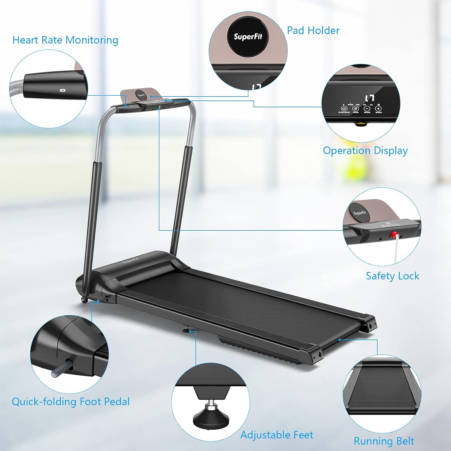 Shockproof Running Belt – This exercise treadmill is designed with 5-layer non-slip and shock-absorbing running belt in order to bring you comfortable running experience. What’s more, the shockproof running belt provides great cushion for your knees, ankles and muscles for security.
