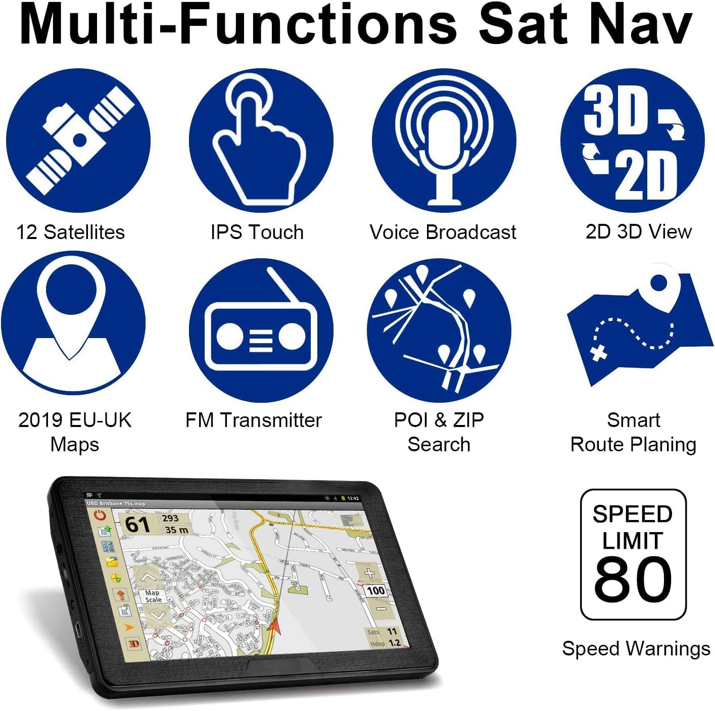 [Wide Range of Vehicle Applicability] – The handheld gps is suitable for car, truck, bus, taxi, bicycle, emergency, pedestrian, RV, Semi truck, Motorhome, Caravan, Commercial Drivers. When driving, you will benefit from the information of length, width, height, weight and other data. Type-C charging cable at home or car charging cable for cigarette lighter are included. With music, video, and photo player is the GPS navigation system also a multimedia. More fun to drive!