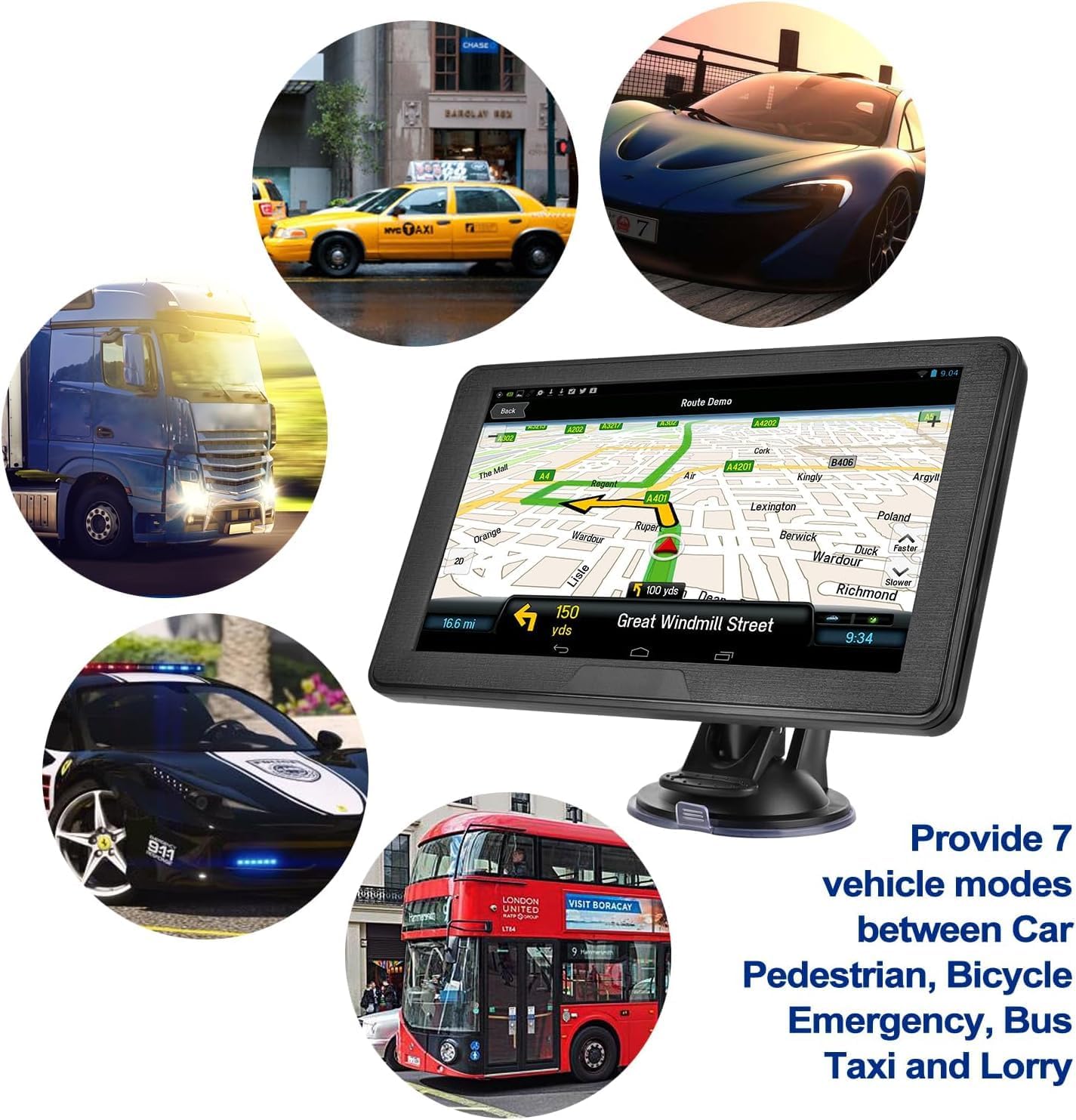 Size:9 inch HQARAT is the best choice of GPS Navigation for Car Trucks. Lifetime Maps Update, preloaded with the latest 2025 maps US Canada and Mexico. HQARAT understand your concern of maps update and lifetime service, HQARATlocal after-service team in USA, supply all you may request, The navigation system which has 2D / 3D navigation map display, illustrate clear road map display and enlarged maps of complex intersections,Driver alerts for dangerous curves, speed changes, speed cameras, railroad crossings, animal crossings ,alert you to nearby schools and school zones, Receive notifications for nearby red light cameras and speed cameras. Professional Trucks(semi truck)/RV route has detailed maps for truck trailer drivers and the RV and camping enthusiast.That include truck-related restrictions -like Bridge heights, dangerous curves, weight limits and more and related information for most major roads and highways.You can customize a better route according to your vehicle’s weight, length, height and width, thus avoiding the roads which have width restrictions or height restriction or weight restriction, etc. And you can save profiles for multiple vehicles or trailers and more. plus HQARAT GPS Navigation System support postcodes, favourite addresses, point of interest, and satellite coordinates search. General Information: Brand: HQARAT System: Windows CE 6.0 Display Screen: 9″ TFT LCD touch screen Resolution:800 * 480 pixels Memory: 8 GB ROM 256MB RAM Support TF card up to 32GB Size(LWH): 22.5Ă—13.5Ă—2.0 cm Net Weight : 440g USB Interface: USB 2.0, mini USB Battery: 3000mAh lithium battery Charging Time: 2-3 hours