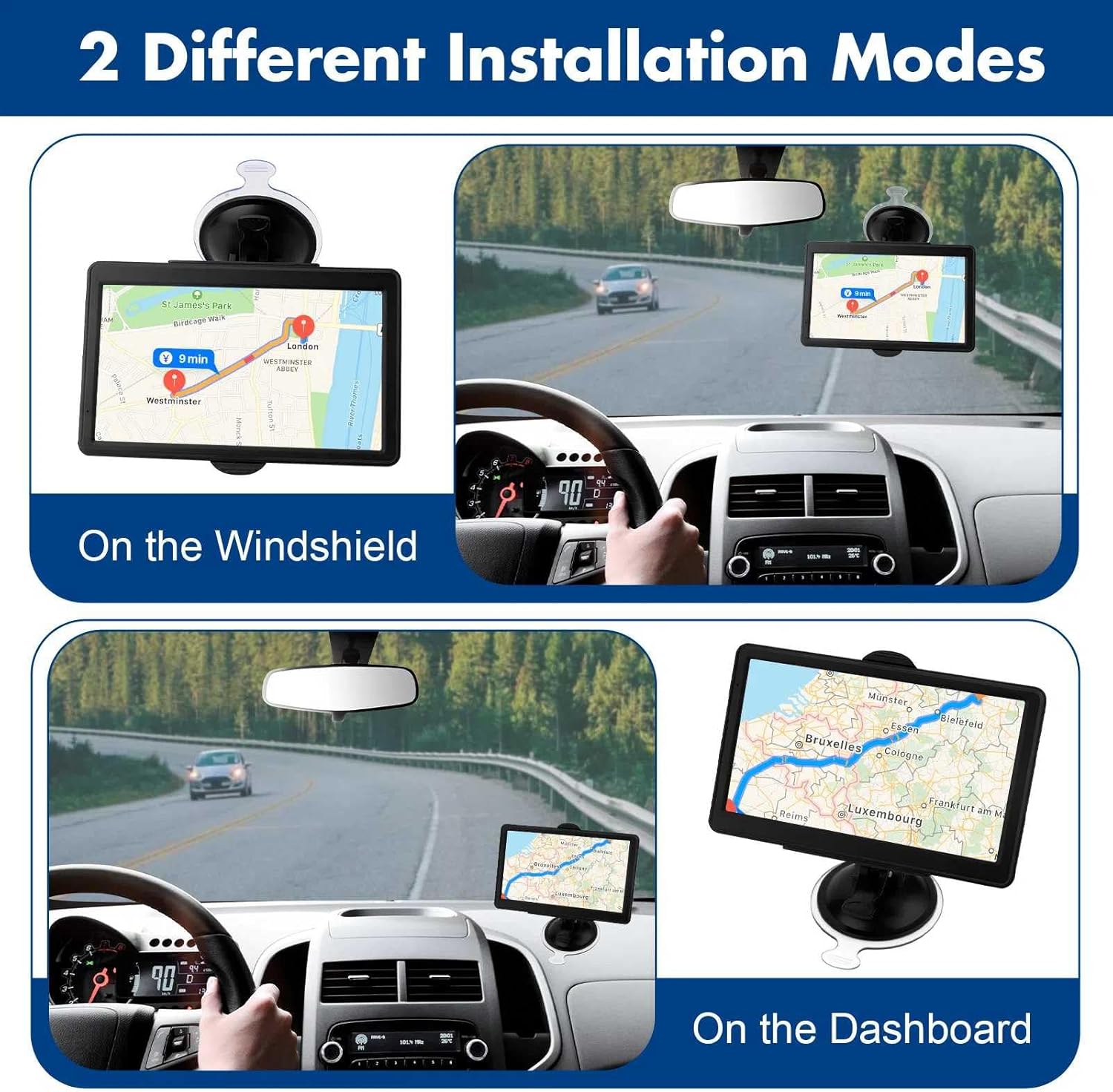 12 GPS channels to search for addresses, coordinates or POI for gas station, parking lot, etc.2025 latest maps of 101 regions in the United States, Canada, and Mexico included with the navigator and lifetime free map updates. If you need European maps, please feel free to con*tact usTraffic sign display & stationary speed camera warning of speed limit and limit heightLogical route calculation & show estimated time of arrival displayComes with Cigarette Lighter Charger, Rear Mount, Suction Cup Mount