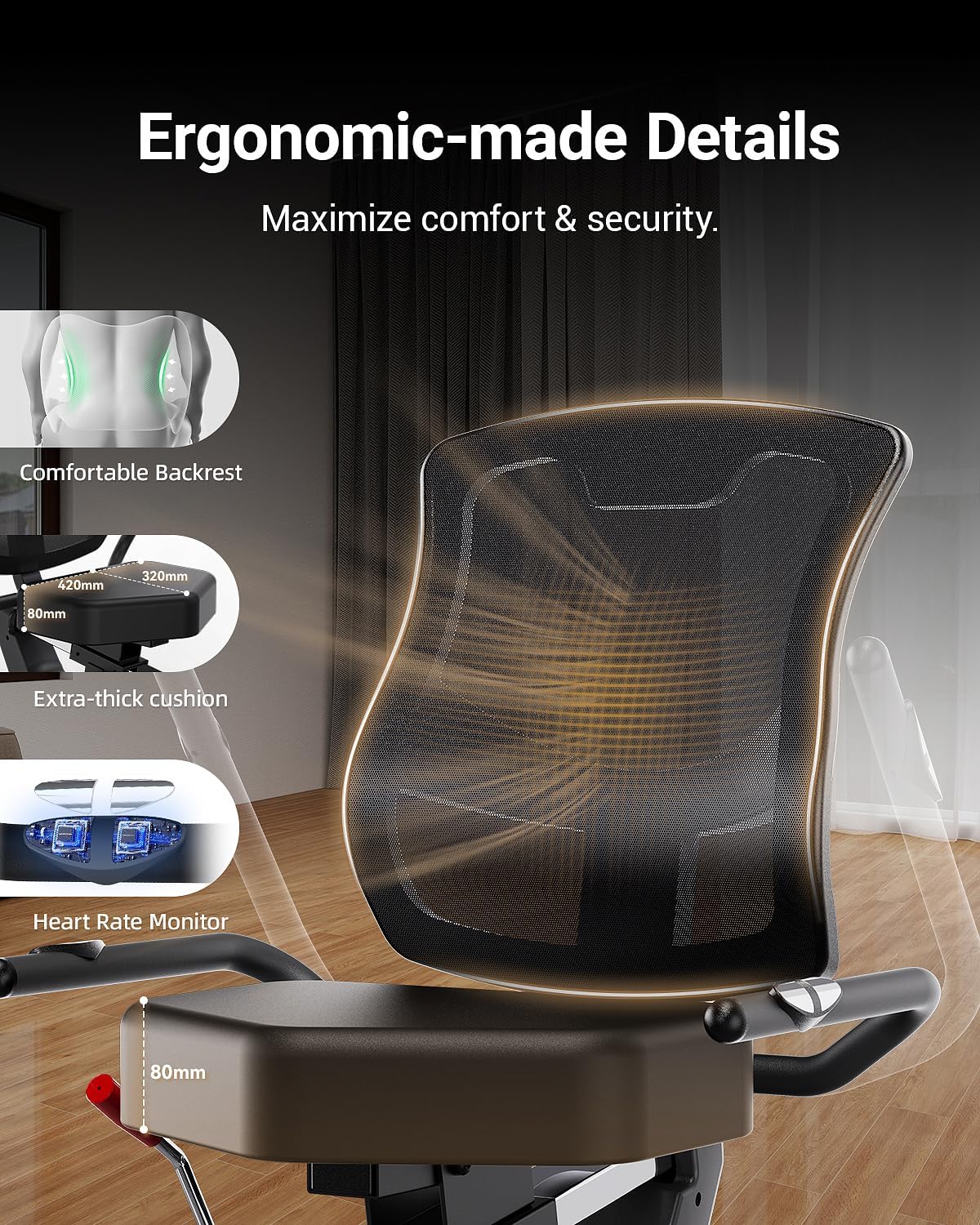Ergonomic Design: HARISON semi commercial recumbent exercise bike is thoughtfully designed with a padded seat and supportive backrest, ensuring maximum comfort during long workout sessions. It’s perfect for home use, especially for seniors or anyone looking for a joint-friendly cardio solution.