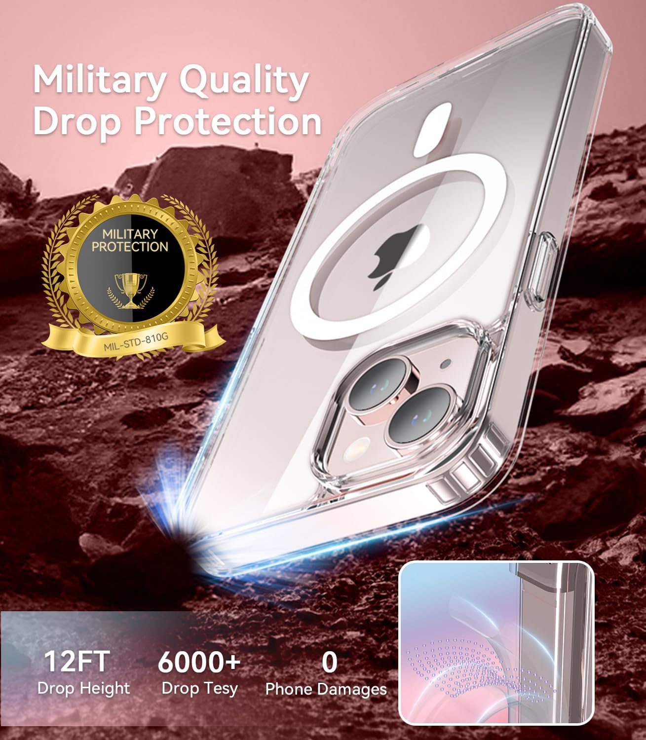 【Military Drop Protection】The phone case is specially designed for iPhone 15 Case. The interior is designed with shock-absorbing materials, which can effectively absorb and disperse the impact of the phone when it falls, providing strong protection for the phone. The edge of the phone case adopts a raised design to provide an additional protective layer, effectively reducing the impact on the screen or body when the phone is dropped, thereby extending the service life of the phone.