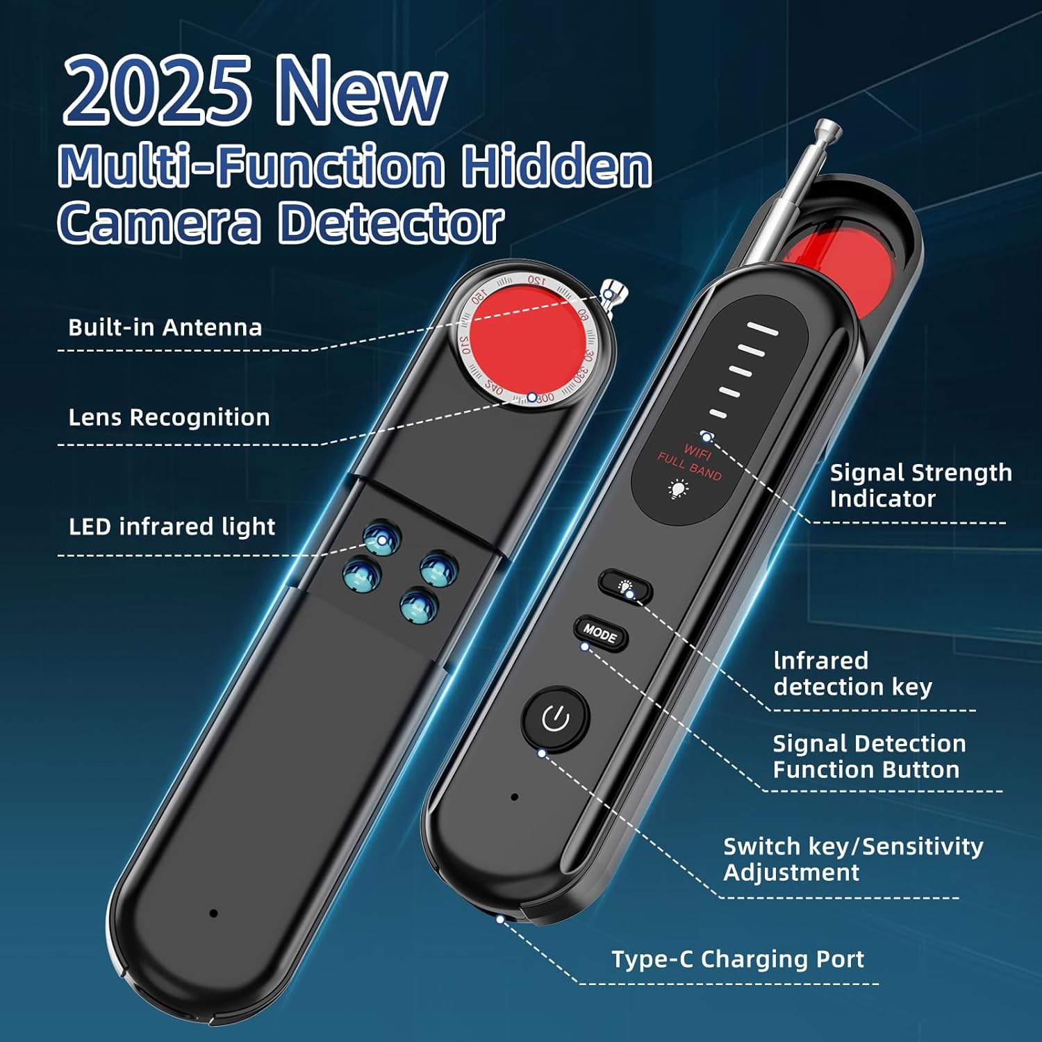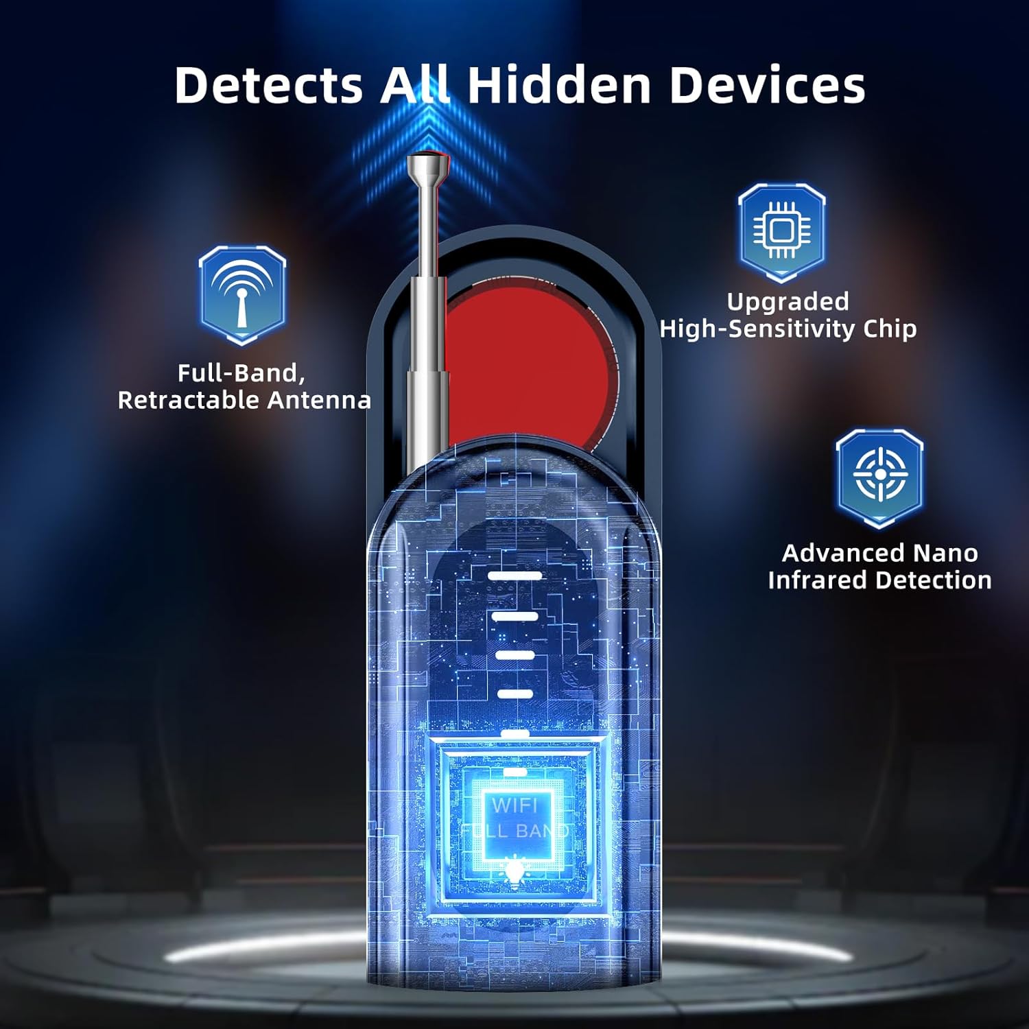 Switch between 4 modes: Signal Detection, Camera Detection, Full-Band Detection, and Red Infrared Detection. Each mode helps you easily find various types of hidden devices.