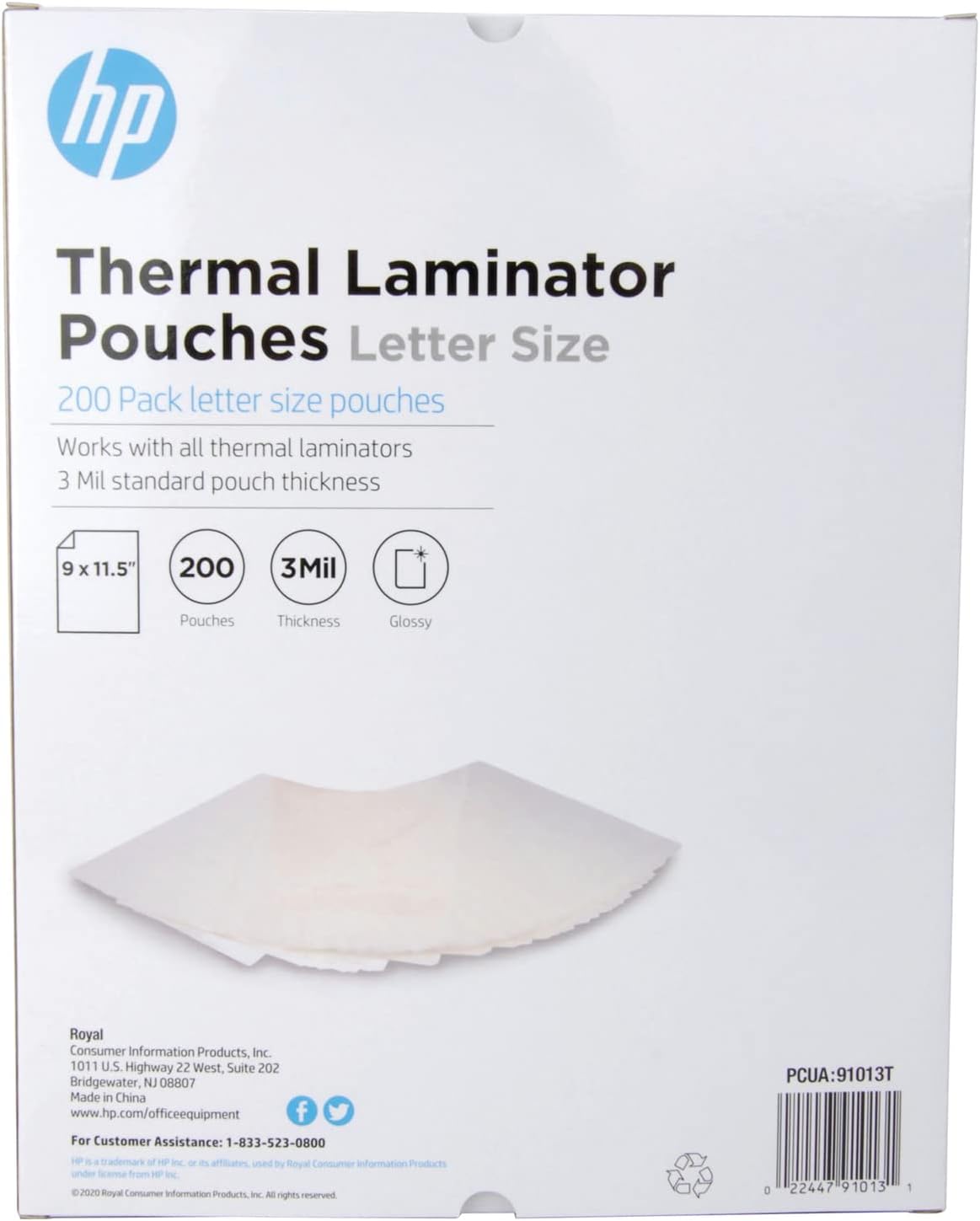 HP – Laminator Pouches, Premium Quality for Professional Results, Ideal Laminating for Documents, Photos, and More (200 Pack)