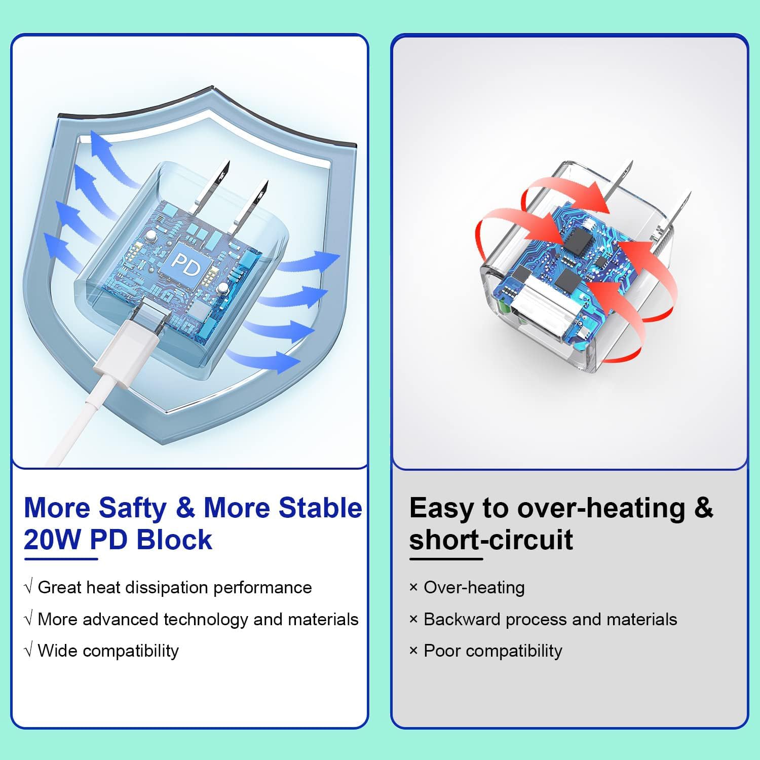 [ Safe & Stable Charging ] This 20W iPhone 15 pro max charger is designed for delivering fast, safe and stable charging speed. Built-in multiple safety guard functions to eliminate Over-Voltage, Over-Current, Over-Heating and Short-Circuit issues. With upgraded smart chip prevents battery damage and maximize lifespan of your devices.