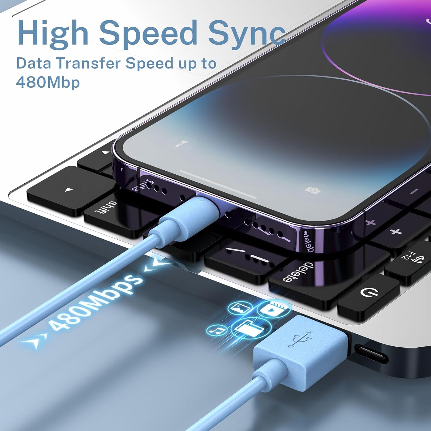 【Apple MFi Certified for Safety & Compatibility】Each cable is rigorously tested and approved by Apple’s MFi program, ensuring seamless compatibility with iPhone 14/13/12/11/X/8/7, iPad, and AirPods. No charging interruptions or “unverified accessory” warnings. Supports 2.4A fast charging and 480Mbps data transfer