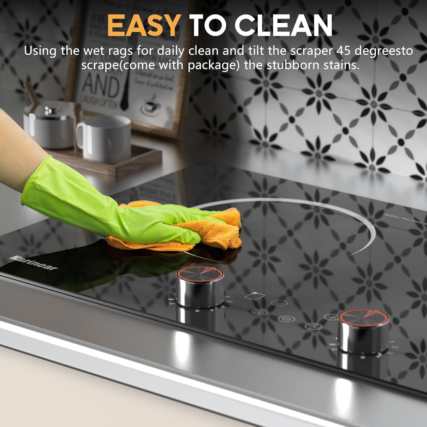【Knob and Sensor Touch Control】The 2 burner electric cooktop has two separate knobs for each burner, offering 9 heat levels each. The touch control panel in the two burner electric cooktop center, allowing for easy operation, including power, timer settings, and a child safety lock, making meal prep a breeze for both novice and experienced chefs.