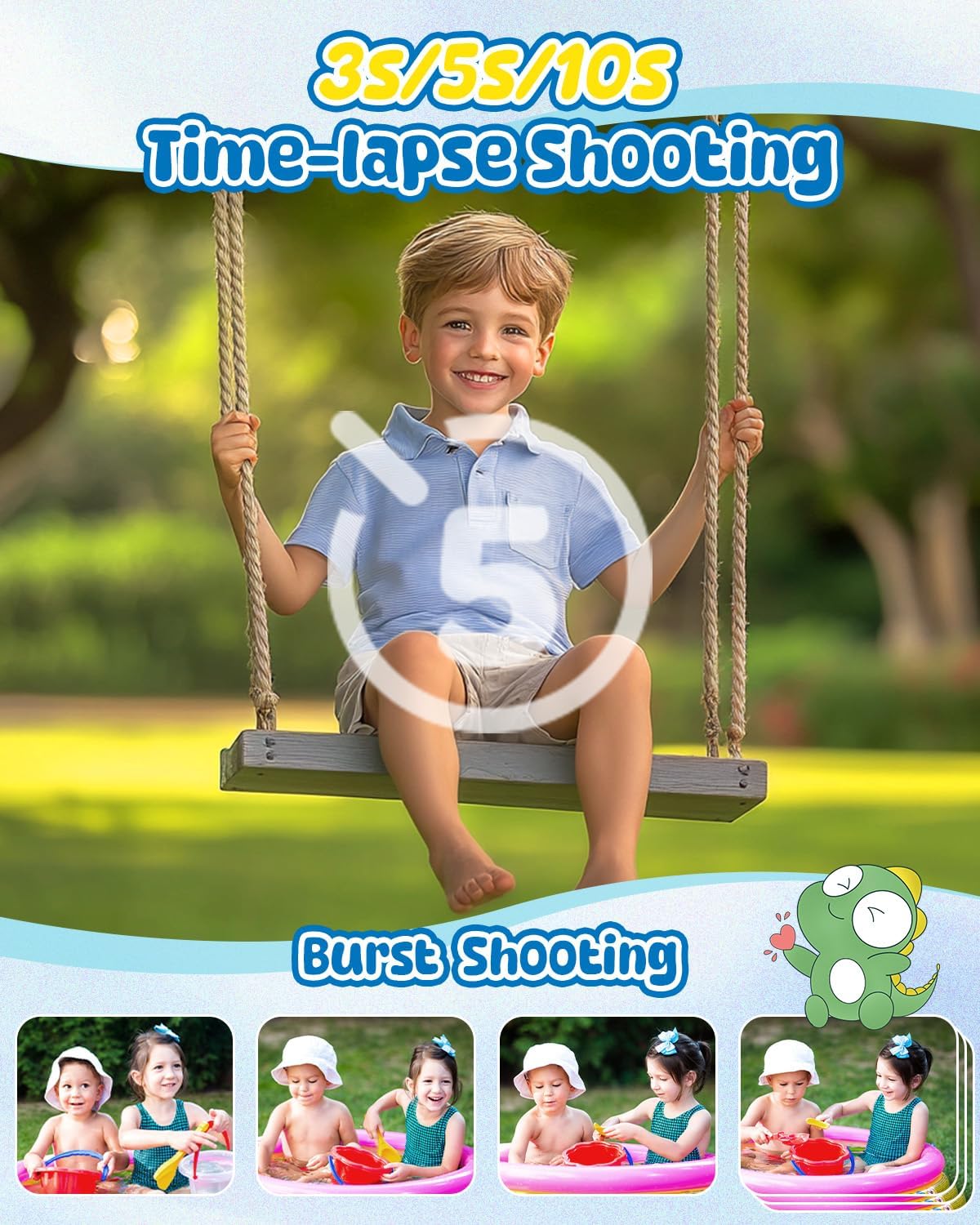 【Long Battery Life, Burst Mode & Time-Lapse Features】Powered by a 1000mAh rechargeable battery, this kids’ instant camera offers up to 4 hours of playtime. It also includes burst mode for capturing fast action and timer settings (3s/5s/10s) for group selfies or creative poses—making photography both fun and interactive!