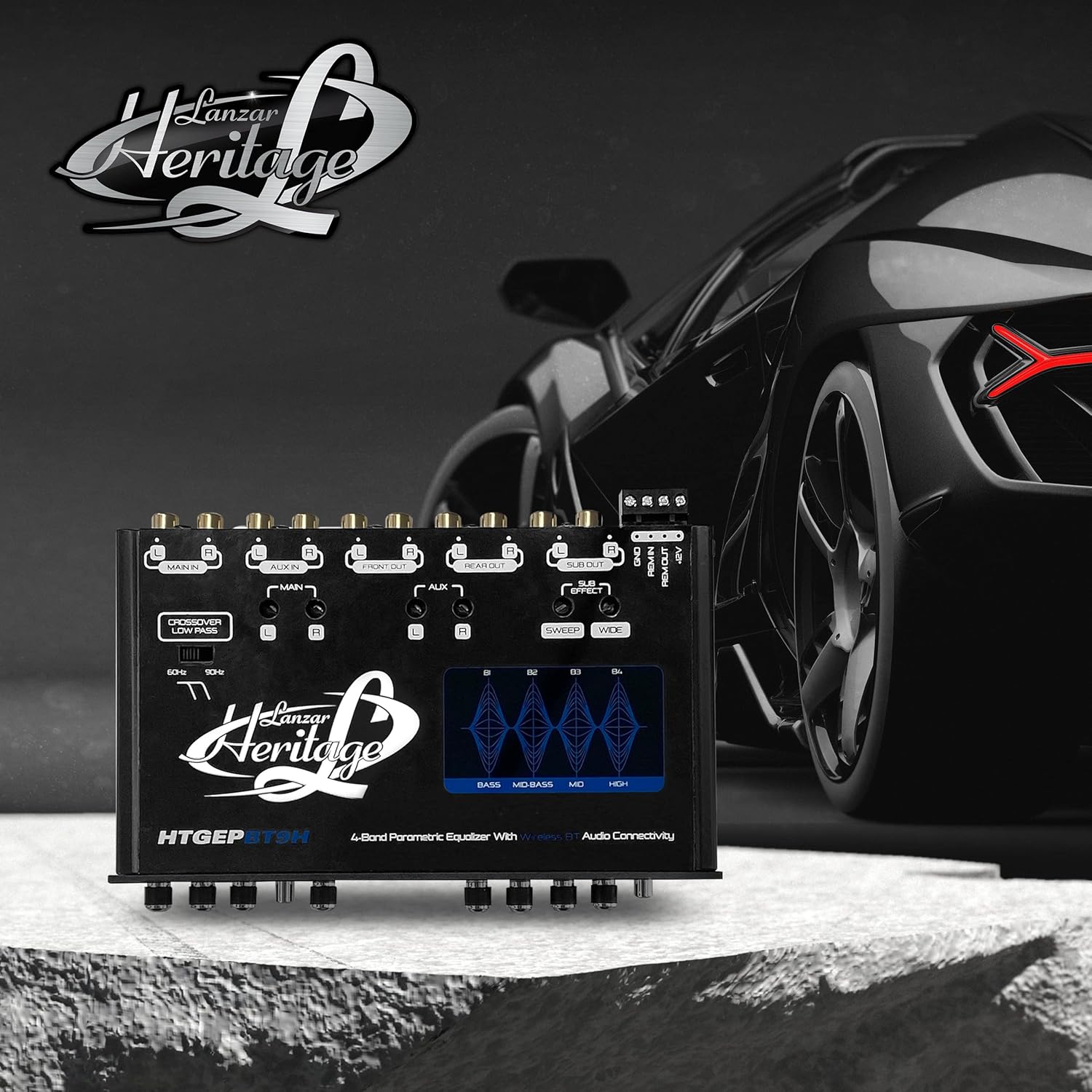 Lanzar 4 Band Parametric Equalizer – Wireless Streaming, Half Din Size, Rotary Fader, Input Gain Adjustments, Sub Output Volume/Sweep Control, Low Pass Crossover, 18 dB Boost, Blue Light Illumination
