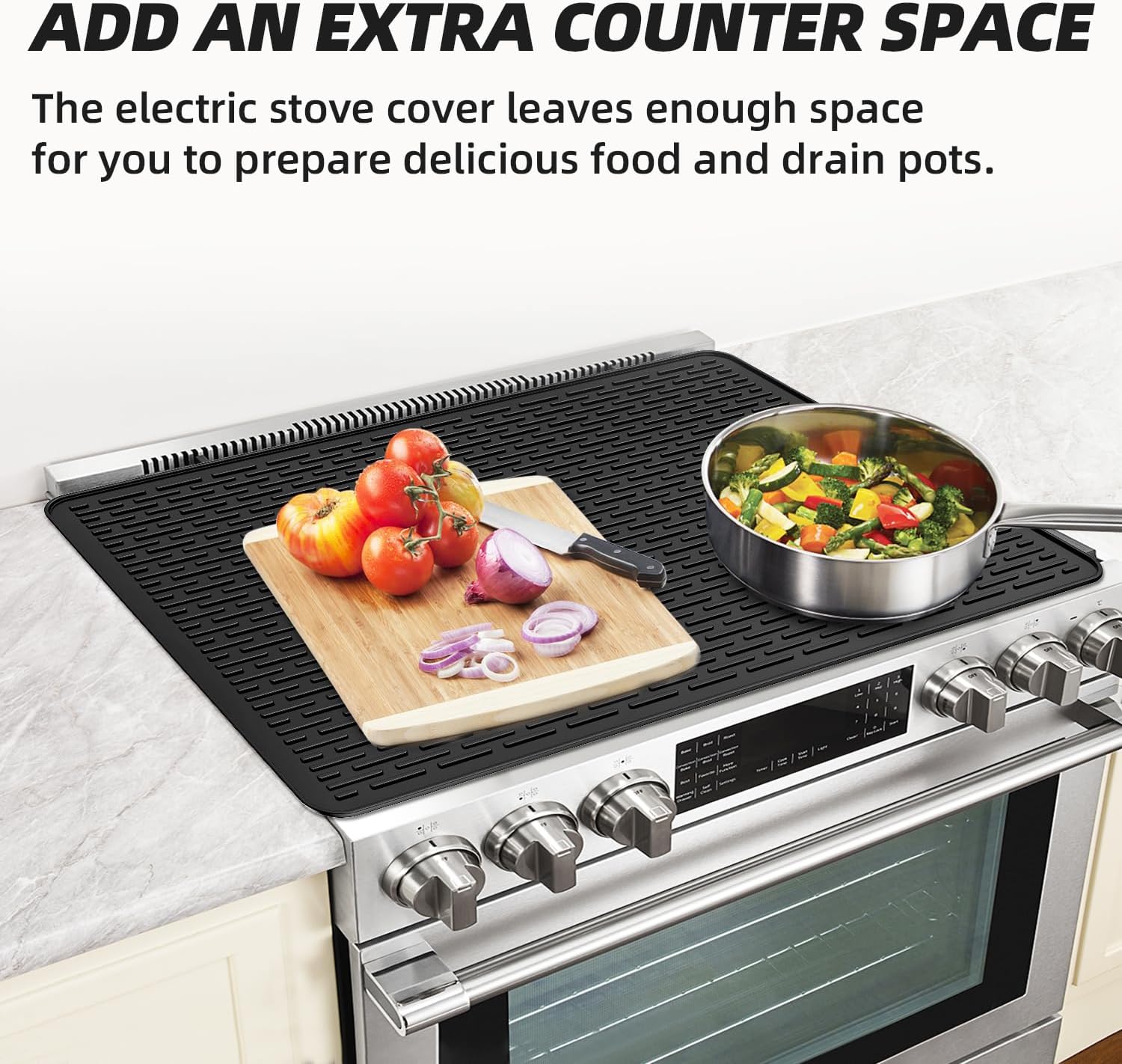 Multipurpose Silicone Mat: This oven top cover also can be used as dish drying mat, heat resistant mat, coffee bar mat, pet feeding mat. The kitchen stove cover works with many situations and make kitchen fun