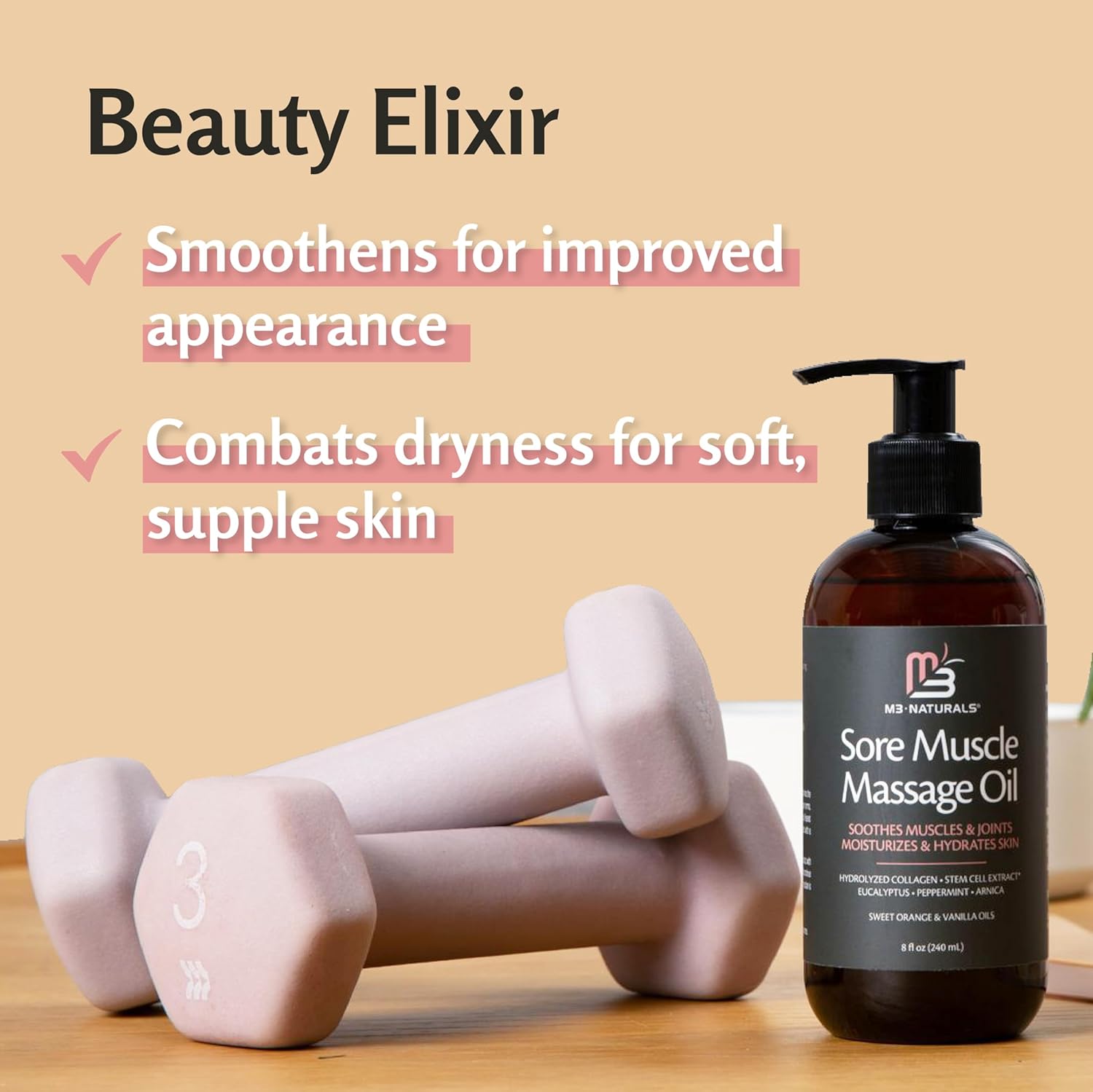 M3 Naturals Arnica Sore Muscle Massage Oil with Collagen, Stem Cells, and Menthol, Anti-Cellulite Therapy for Full Body, Fast-Absorbing Multipurpose Treatment