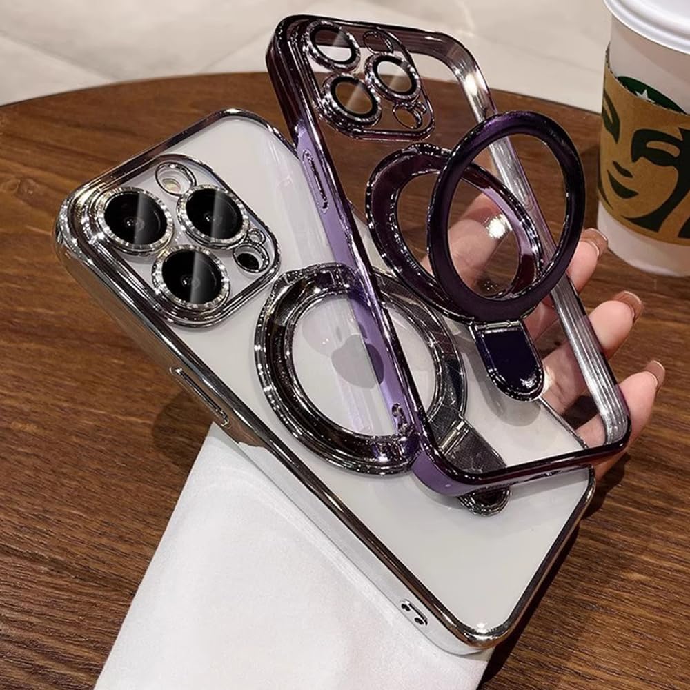 Magnetic for iPhone 16 Pro Max Case Clear Invisible Ring Stand Built-in Camera Lens Protector Compatible with MagSafe Military-Grade Shockproof Case for 16 ProMax,Purple