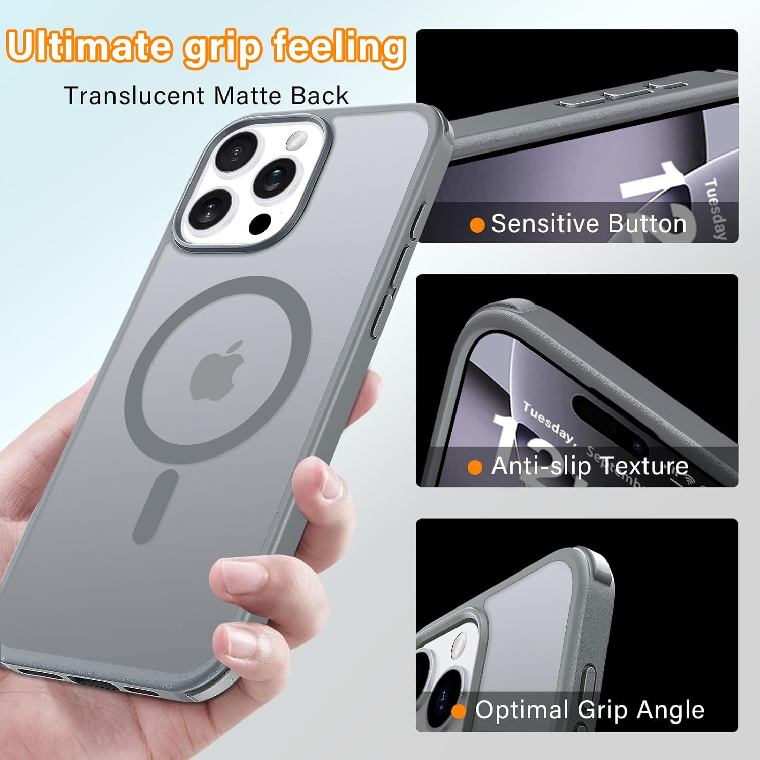 Magnetic for iPhone 16 Pro Max Case, Compatible with MagSafe with 2X Screen Protectors, Military-Grade Slim Shockproof Phone Case Translucent Matte Anti-Fingerprint Anti-Scratch,6.9-Inch,Grey