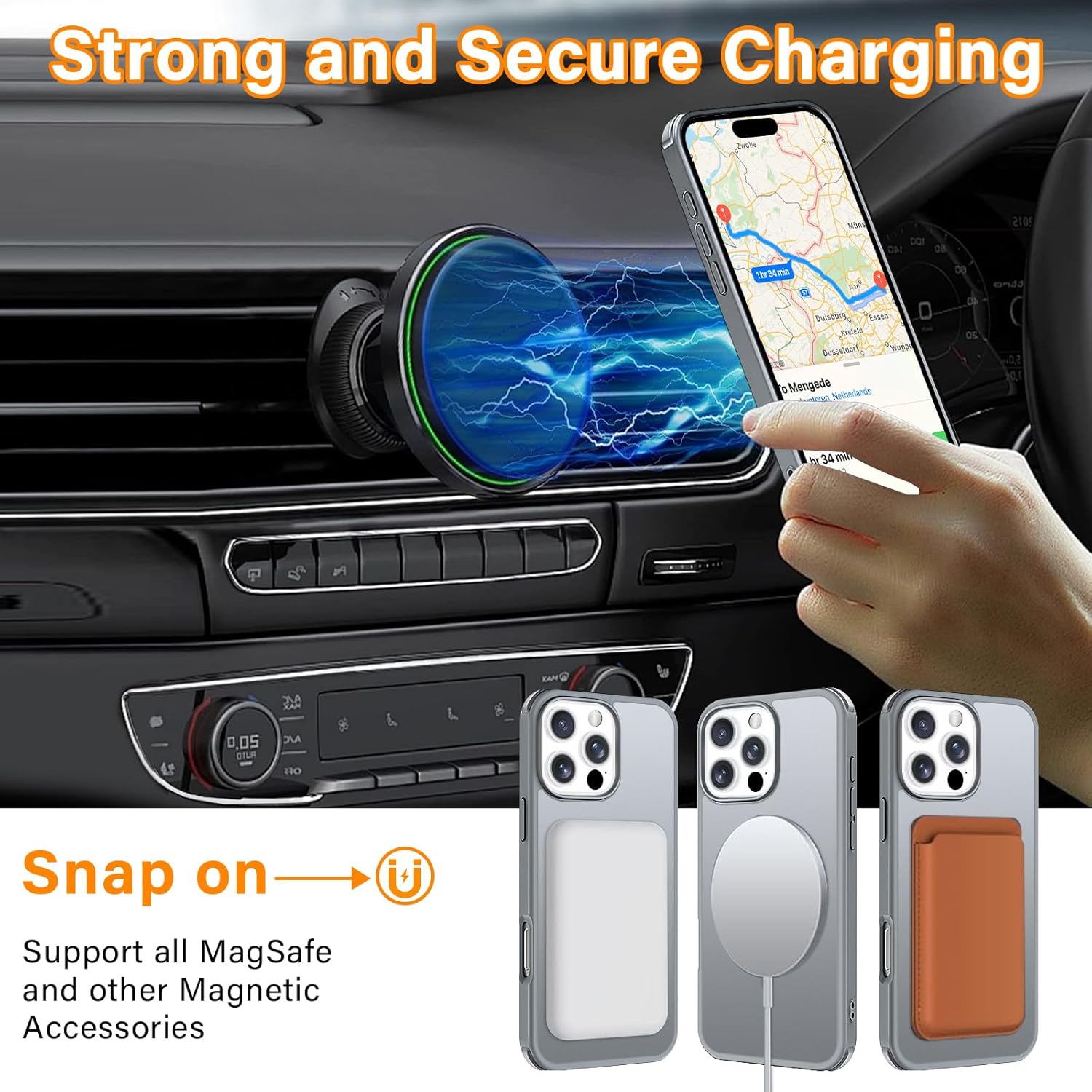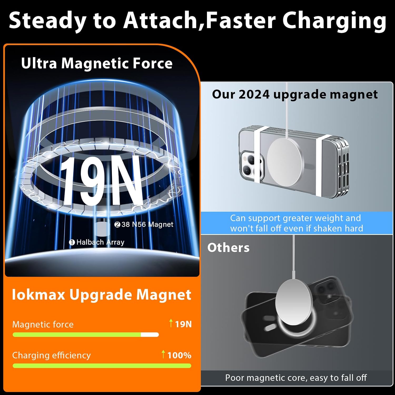 【Super Magnetic Attraction for Fast Charging】Compatible with all MagSafe accessories and other Qi-certified chargers. This iPhone 16 Pro Max phone case is equipped with a built-in strong magnet, offers a strong connection and faster wireless charging. It can be firmly attached to charger, wallet, battery pack, car mount. Also keeps your phone staying in place and stable charging even when driving on a bumpy road