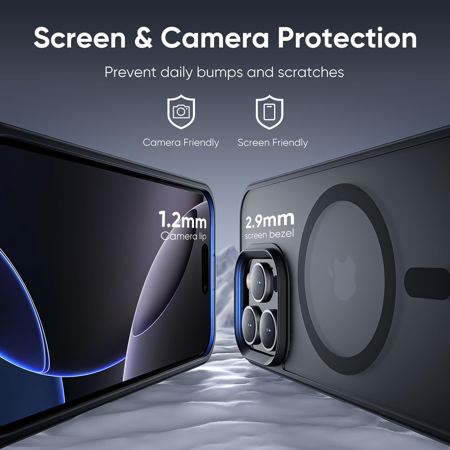 【Screen & Lens Protection】Our fits Magsafe Case for iphone 16 pro max has 2.9 mm camera lips and 1.2 mm screen lips that help your phone avoid rubbing against surfaces that leave permanent scratches.