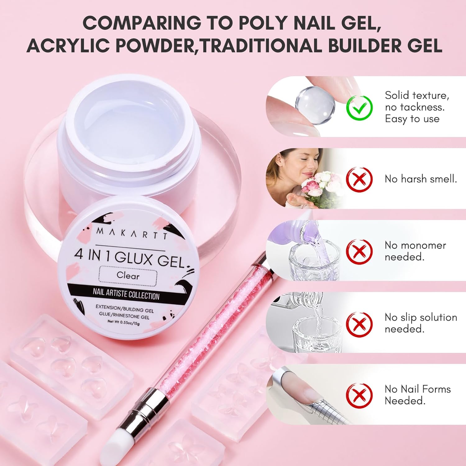 4-in-1 Hard Gel for Nails–Makartt multifunctional solid nail gel can be used as nail extension gel, uv nail glue gel for nail tips and soft gel nails or gelly tips or clear press on nails, nail rhinestone glue gel and 3d sculpting gel for nail art decorations DIY.A money-saving builder nail gel for your professional or daily nail art