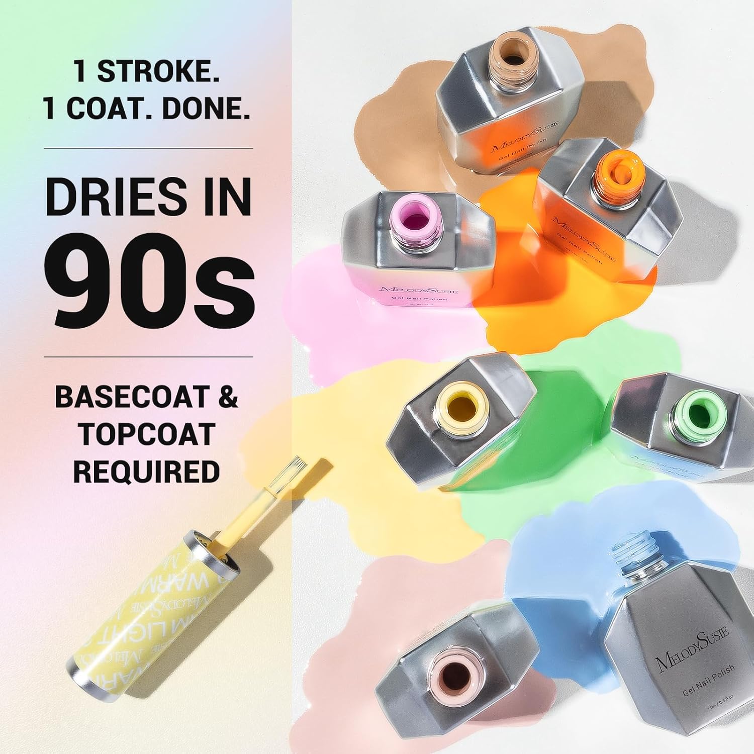 Melodysusie THICK GEL:Only a thin layer of gel is needed for perfect coverage. If you apply too much gel, you will need to cure it under UV light for 30+s.Various gel polish colors can be adapted to different seasons throughout the year. It is easy to have a variety of nail styles to meet your needs for work, clothing, and activities. You can also use different colors to create your own nail art.