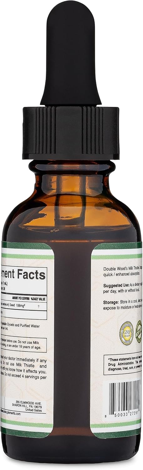 ORGANIC MILK THISTLE EXTRACT: Double Wood’s Milk Thistle Liquid Supplement contains 30 servings of 108mg Organic Milk Thistle Seed Extract per serving with silymarin (total 1FL OZ per bottle)