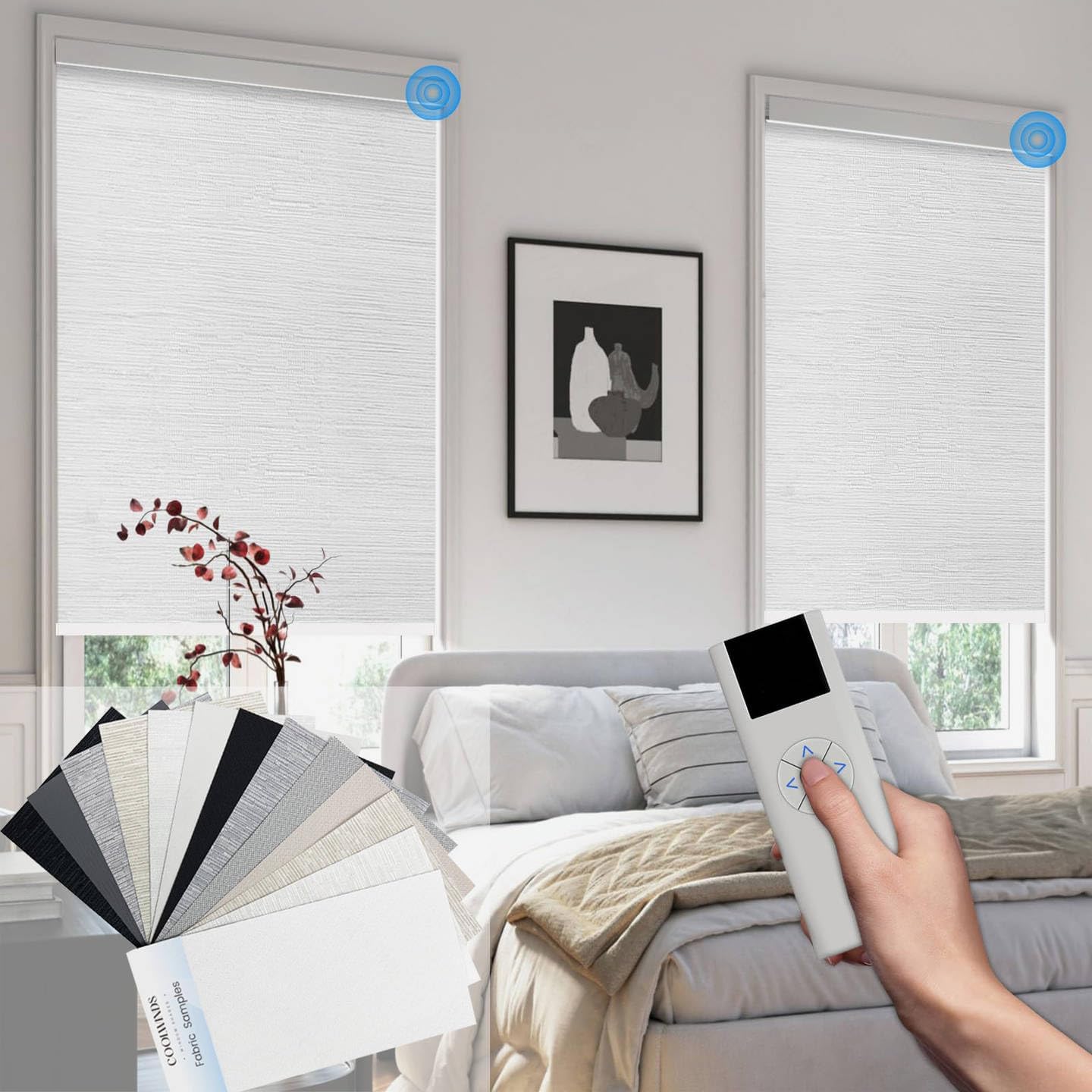 Motorized Blinds with Remote Cordless Automatic Motorized Shades Custom Blinds for Indoor Windows Smart Curtains with Alexa Google Home(,Fabric Samples)