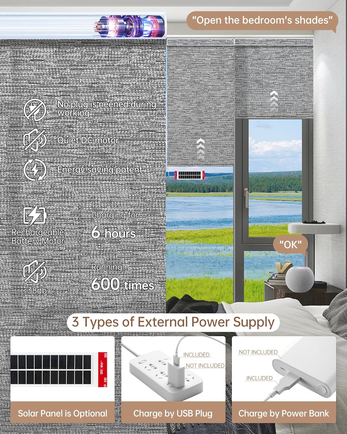 【Extremely Extensive Customization Options】 Everything you can imagine is customizable. Click the yellow “Customize Now” button on the page to customize every detail of the motorized blinds with remote. For example, you can choose to customize the appearance of the automatic blinds or equip the automatic blinds with a solar panel, allowing them to be powered by solar energy. This not only makes your daily life more convenient but also reflects the concept of green energy conservation.