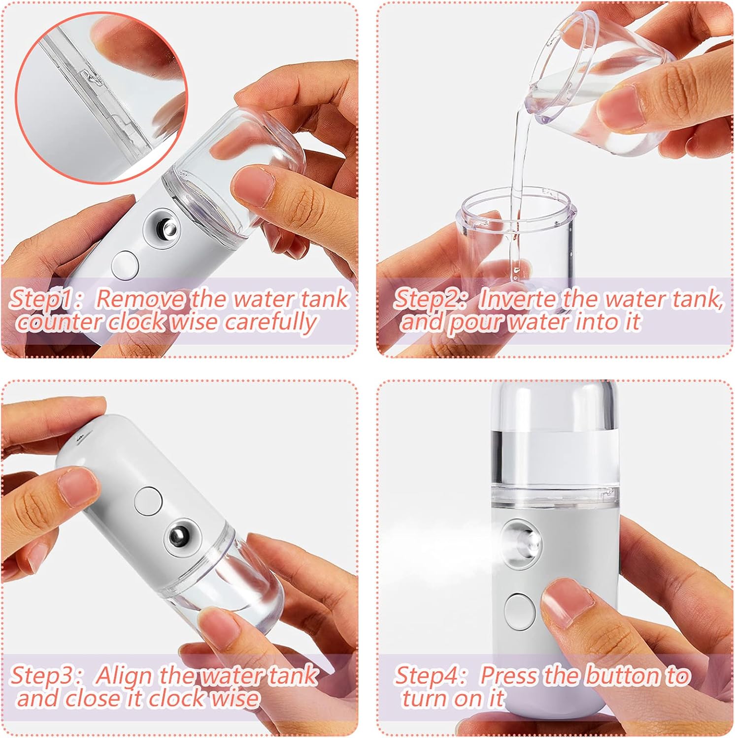 You Will Get: the package includes 4 pieces of portable nano facial mister in simple yet classic colors, the size of each water tank is 10 x 4 x 4 cm/ 3.94 x 1.57 x 1.57 inches and the capacity is 30 ml, which is suitable for home or going out, each package is equipped with a USB charging cable for easy replacement, the USB charging design makes the charging process easier