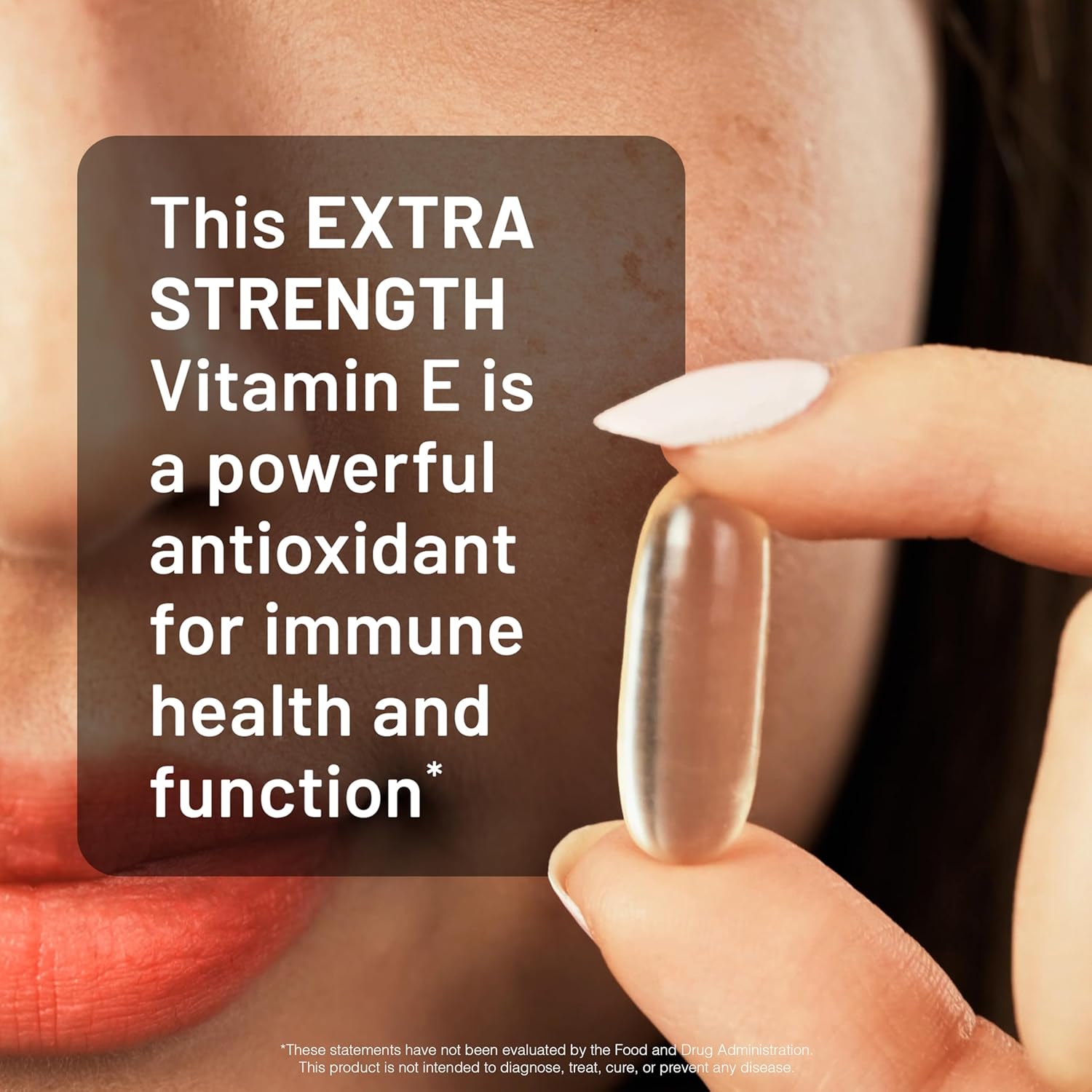 1000 IU VITAMIN E FOR IMMUNE SUPPORT: Our high potency vitamin E delivers 1000 IU (450 mg) of vitamin E in each servings of veggie softgels, to support immune health and function daily.*