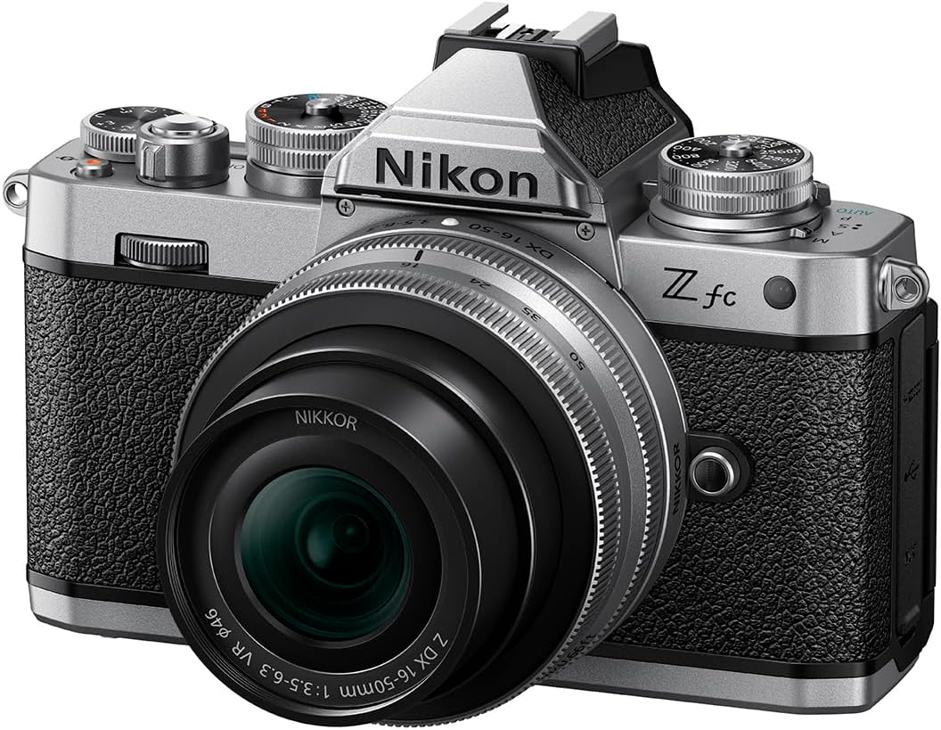 Less Thanspan style=”font-size:24px;font-weight:bold;”Greater ThanAbout The Z fc DX-Format Mirrorless Camera with NIKKOR Z DX 16-50mm f/3.5-6.3 VR Lens, SilverLess Than/spanGreater ThanDiscover the perfect blend of classic design and cutting-edge technology with the Z fc DX-Format Mirrorless Camera from Nikon. This sleek and stylish camera is equipped with a NIKKOR Z DX 16-50mm f/3.5-6.3 VR lens, offering a wide range of focal lengths and a fast aperture for exceptional low light photography. The Z fc camera boasts a high-tech 20.9 MP DX CMOS sensor, paired with the advanced EXPEED 6 processing engine, delivering superb image quality for both photos and videos. Capture stunning 4K UHD videos at 30fps, with the added convenience of a flip-out vlogger screen. The camera also features a built-in stereo microphone and an external microphone jack, making it an ideal choice for videographers.The camera’s sophisticated design is reminiscent of Nikon’s timeless appeal, featuring tactile analog controls for shutter speed, ISO, and exposure compensation. The camera is always connected, allowing you to easily send images to your phone using the free Nikon SnapBridge app and a compatible smart device. The intuitive design provides easy access to Auto Mode, quick settings, and the Menu help guide, making it user-friendly for both beginners and professionals. The camera is compatible with NIKKOR Z lenses as well as F Mount NIKKOR lenses using the FTZ Mount Adapter (sold separate