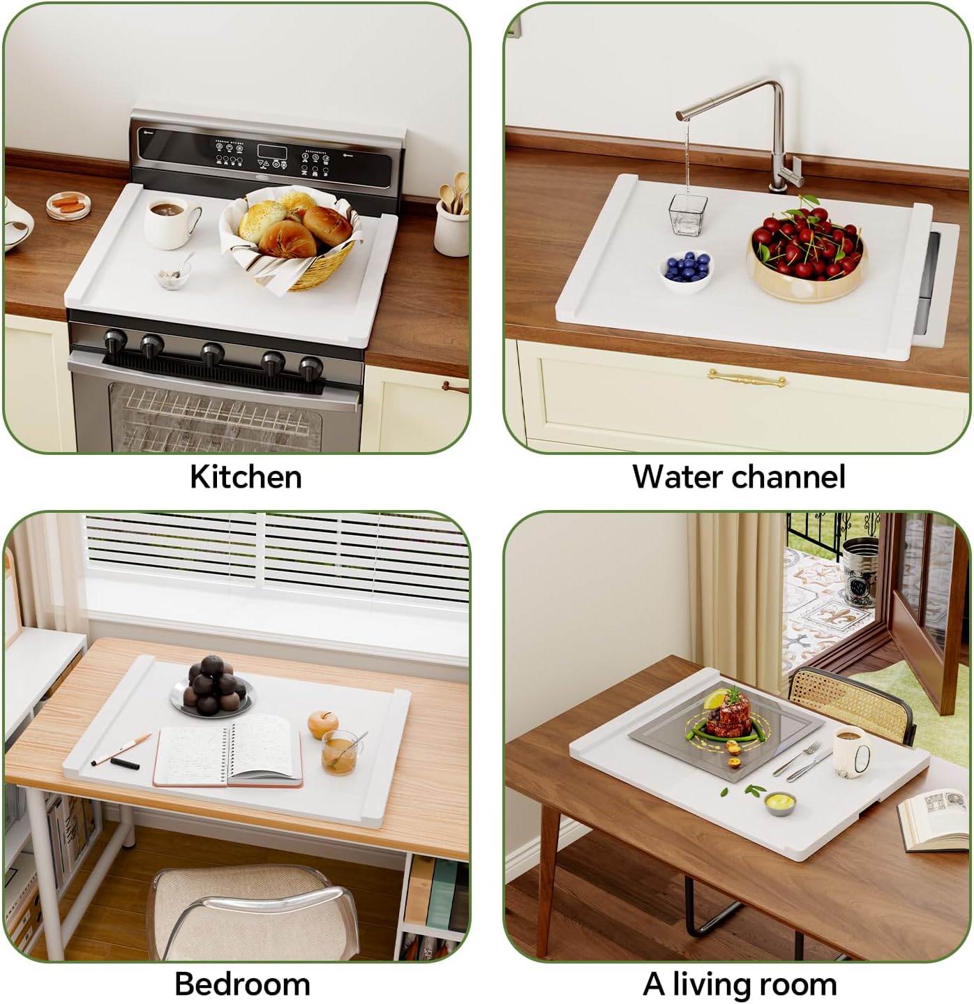 Expands Kitchen Workspace:This stove top cover effectively extends your kitchen workspace, providing extra room for food prep, utensil storage, or showcasing food items, making cooking more efficient.