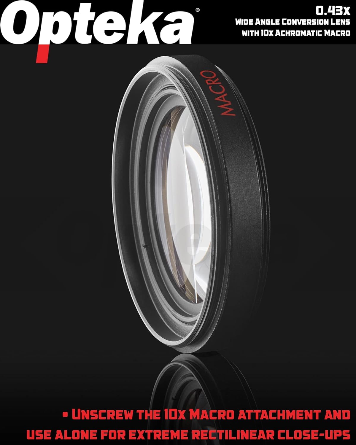 Opteka 0.43x High Definition Auto Focus Wide Angle Lens with Macro Attachment for Canon, Fuji, Nikon, Panasonic, Sony and Sigma 52mm Threaded Lenses Black