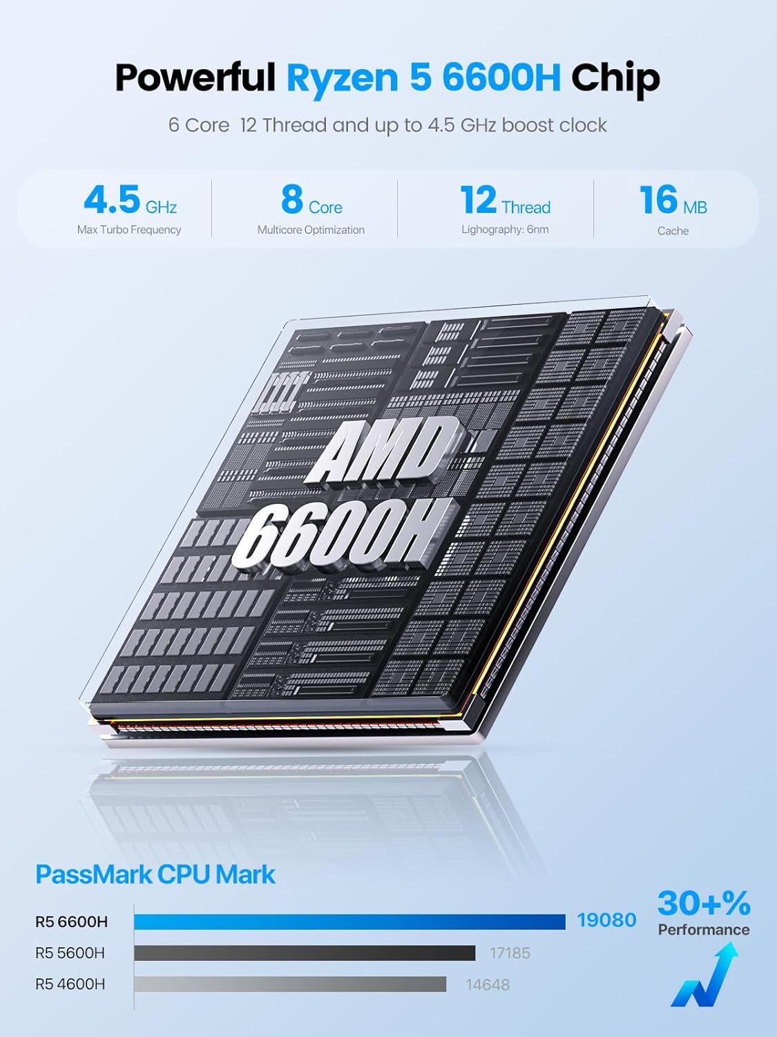 Powerful Performance with AMD Ryzen 6600H – Equipped with AMD Ryzen 6600H (6 cores, 12 threads, up to 4.50GHz), this mini PC offers 30% improved performance over previous Ryzen models, making it perfect for office tasks, gaming, and productivity. Featuring the upgraded AMD Radeon 660M iGPU for enhanced graphics.