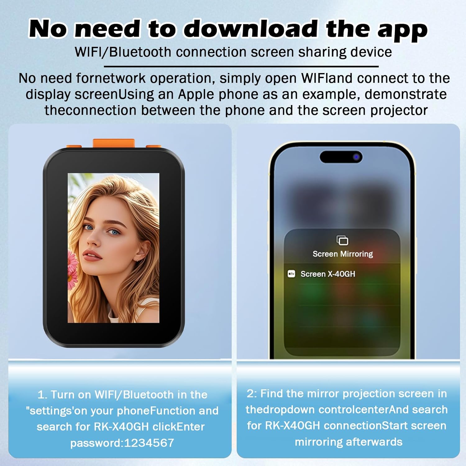Magnetic Mount: The phone Vlog monitor screen has extremely strong magnetic absorption function and can be easily attached to the phone, enabling hands-free recording and a stable, adjustable viewing angle. And you can connect to the mobile phone with wireless screen projection. You can use the mobile phone’s own screen mirroring function to connect to the device without downloading the APP.