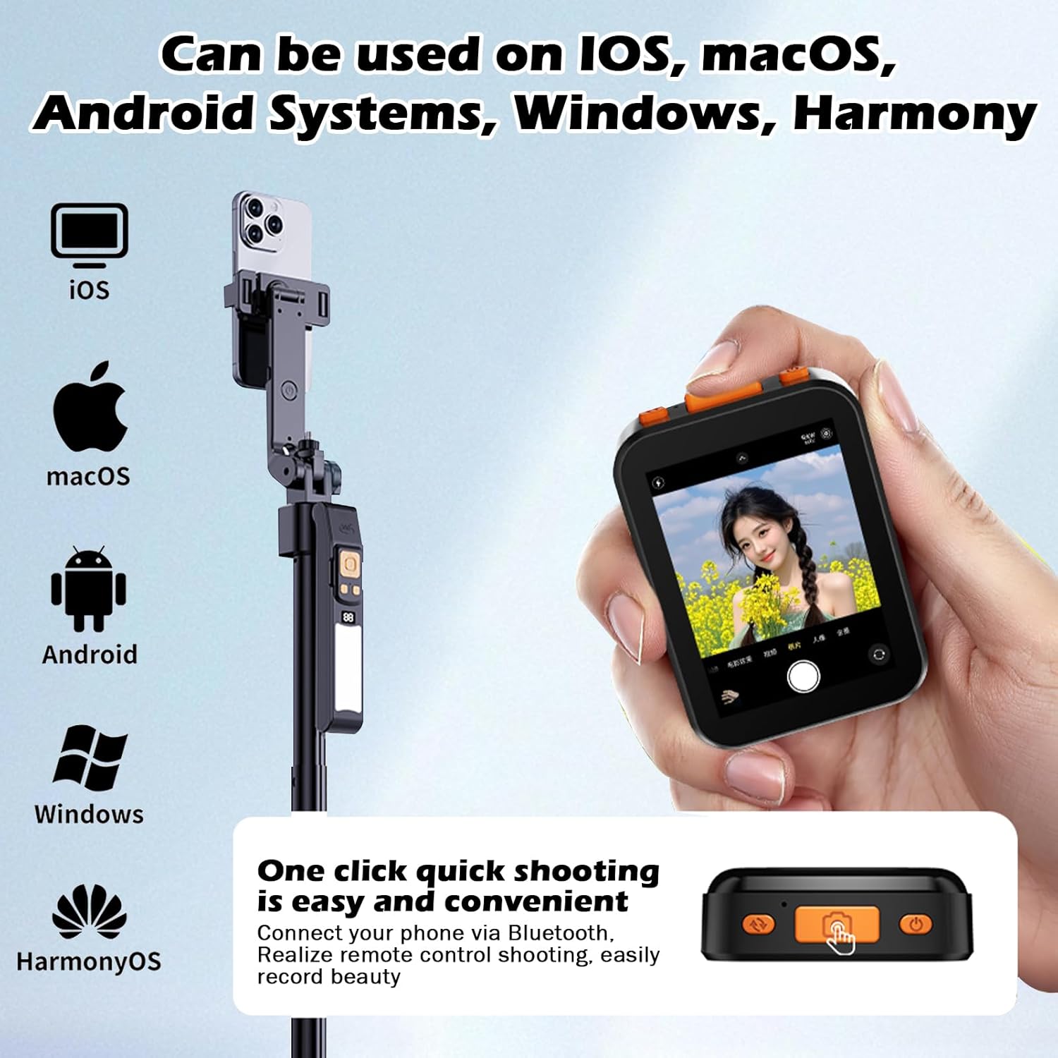 Rear selfie: The rear camera has higher image quality and clarity, combined with this wireless selfie monitor screen, it can take selfies with the rear camera, retaining your clearest beauty. Say goodbye to awkward angles and blurry shots.