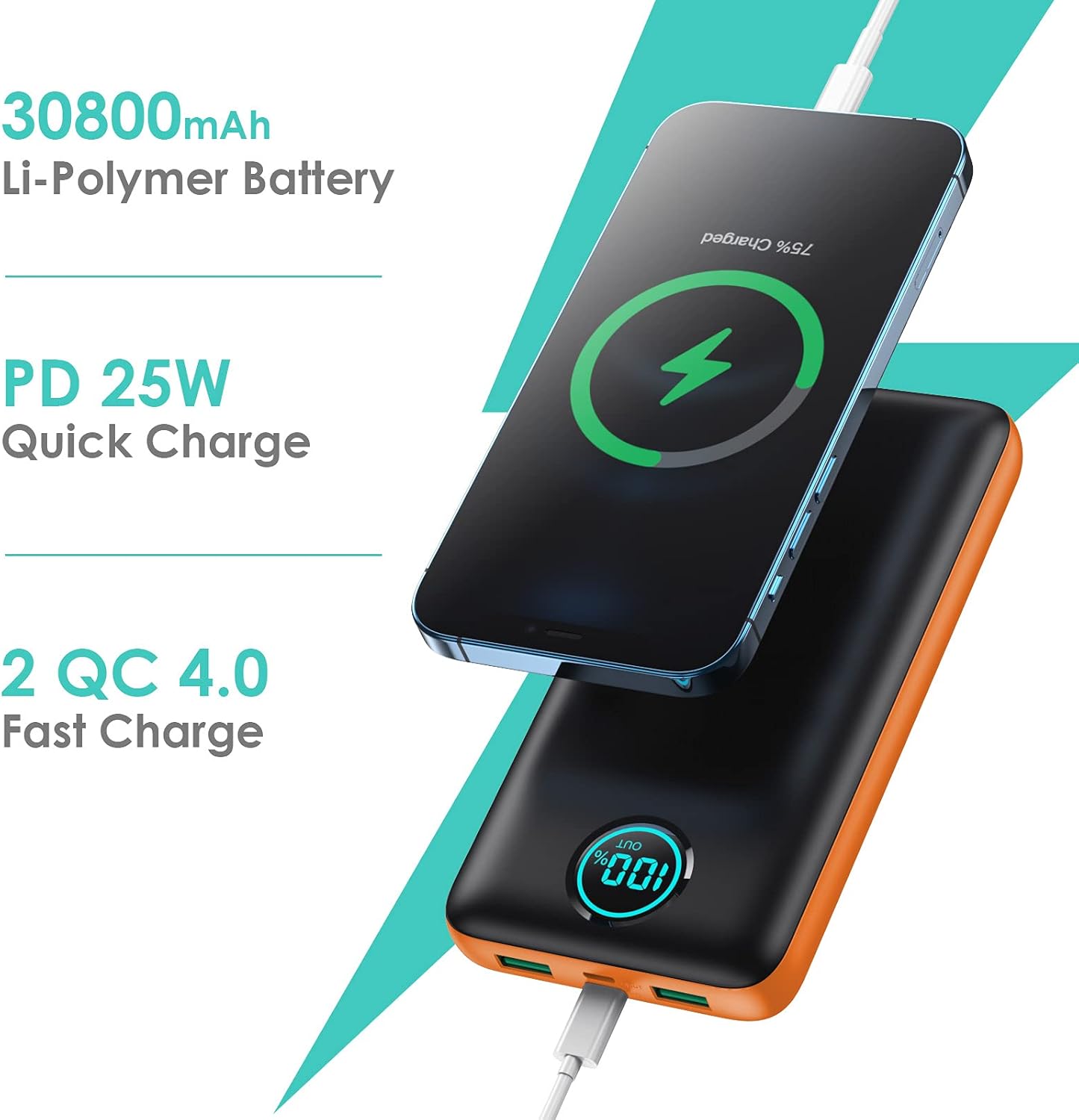 【3 Output -Charge 3 Devices At Once】Power bank with 3 Output Ports – QC4.0 output, PD output, 2.1A USB output, you can charge 3 devices simultaneously.Power Delivery 4.0 output and Quick Charge 4.0 output combine to deliver an optimized charge to your devices at up to 25W. Compared with non-fast charging power bank, save more than half of the time.