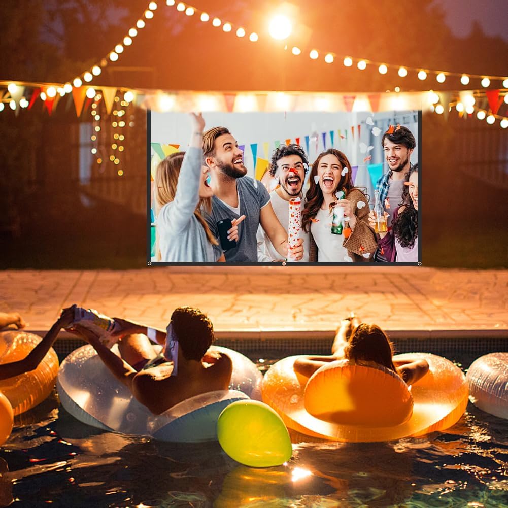 【WIDE USE RANGE】The projection screen can be used in a wide range of applications, such as cinema, home, classroom, office, outdoor, etc. Applicable to outdoor camping movies, open-air cinema and home theater.