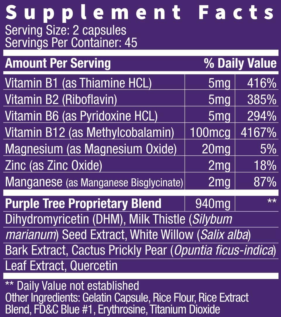 Elevate Your Mornings: Purple Tree’s lab-tested, pure ingredients and formula include Milk Thistle, Willow Bark, and Dihydromyricetin (DHM), a liver support herb.* DHM is a Japanese raisin tree (the “purple tree’) natural extract that has been used since ancient medicine.