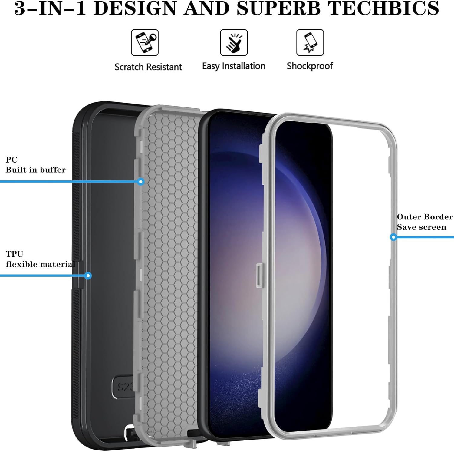 【Perfect protection】3-Layer Heavy Duty Full-Body Protector. The case is made of flexible durable TPU Flexible Back and Hard PC Frame material which provide super drop and shock protection for your phone. Shockproof/Drop/Scratch/Dust proof