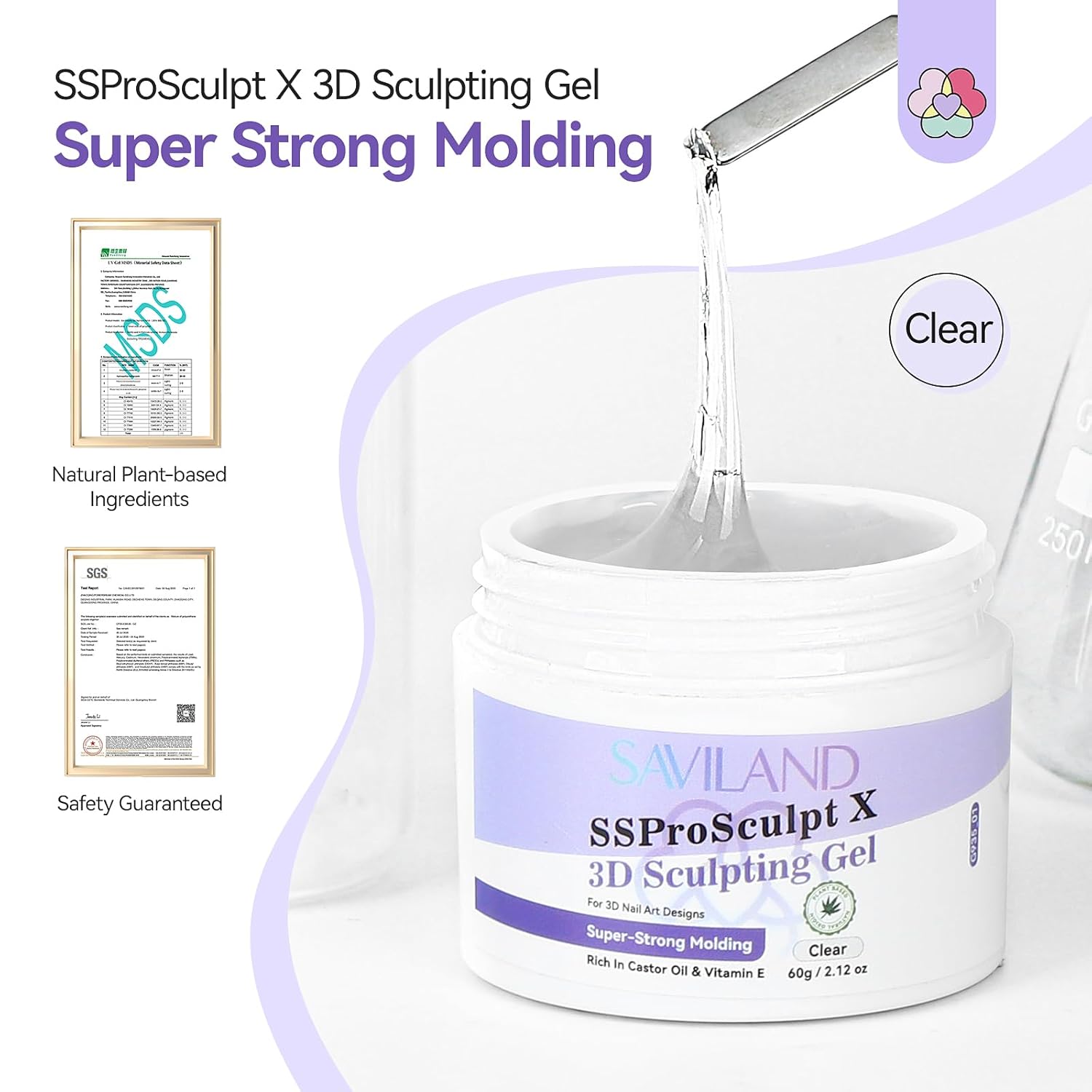 Super-Strong Molding: SAVILAND 3D sculpting gel has a solid consistency, does not flow or deform, and is easy for beginners to control, creating ultra-dimensional and long-lasting 3D nail art shapes with SSProSculpt X nano-molding technology